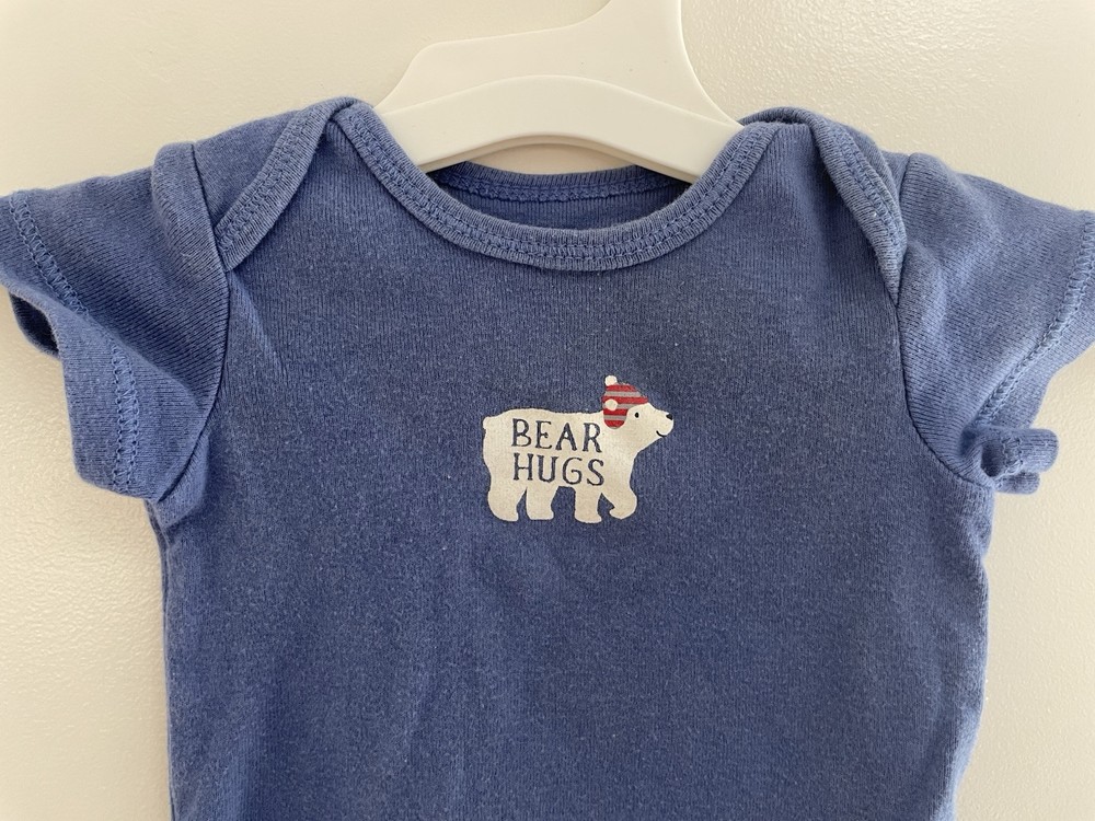 Carter's Baby Boys Bear Hugs Graphic 100% Cotton Short Sleeve Bodysuit Blue 3M. Condition is pre-owned. Smoke free, pet free home. Shipped via USPS Ground Advantage. In very good condition. Free of rips or stains.