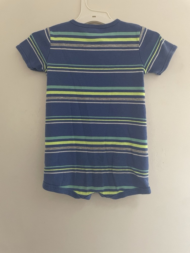 Carter's Baby Boys Colorful Striped Cotton Snap-Up Short Sleeve Romper Blue 12M. Condition is pre-owned. Smoke free, pet free home. Shipped via USPS Ground Advantage. In very good condition. Free of rips or stains.