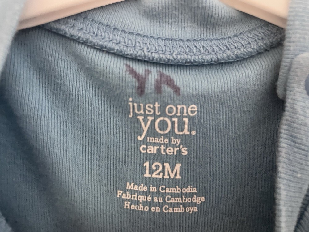 Carter's Baby Boys Cute Allover Dog Print Cotton Short Sleeve Bodysuit Blue 12M. Condition is pre-owned. Smoke free, pet free home. Shipped via USPS Ground Advantage. In good condition. There are light stains on the front. Free of rips.