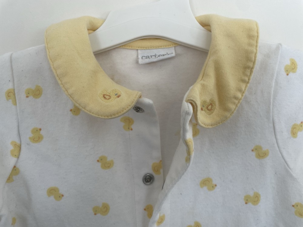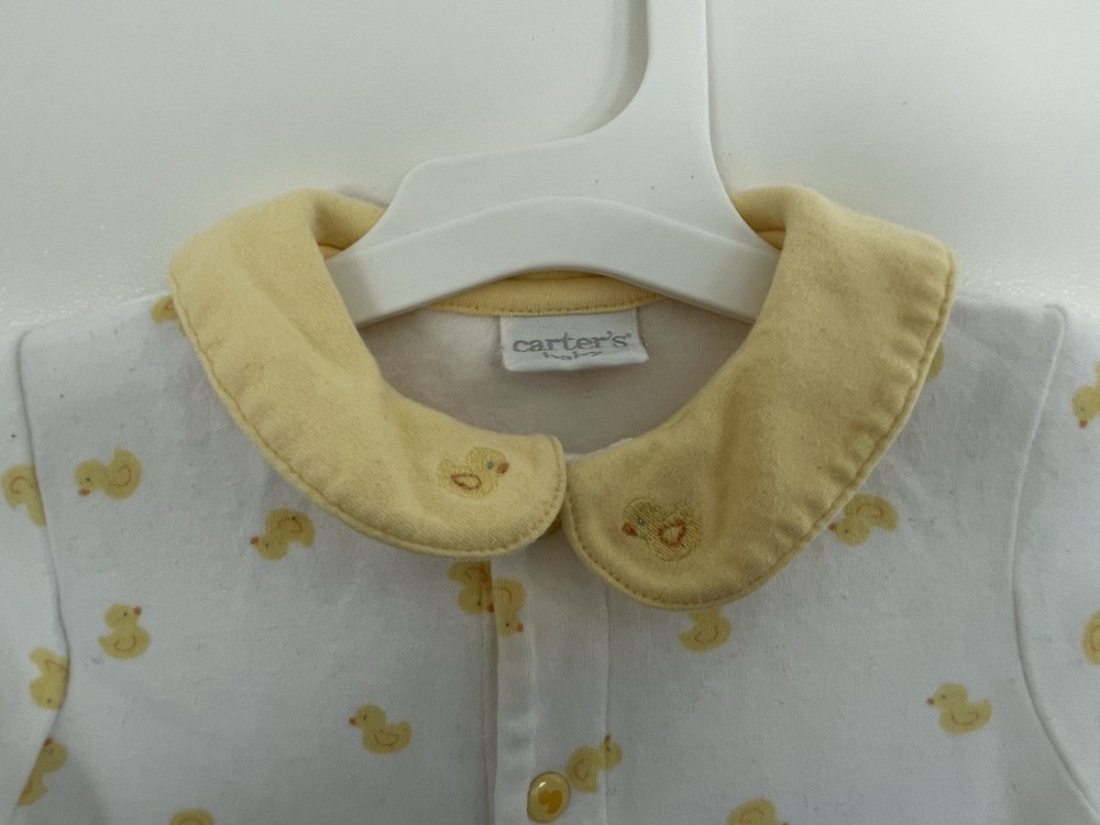 Carter's Baby Boys Cute Allover Yellow Duckie Cozy Snap-Up Sleep & Play White 6M. Condition is pre-owned. Smoke free, pet free home. Shipped via USPS Ground Advantage. ***Exact size is unknown. Approximate size is for a baby boy 6 months.*** In very good condition. Free of rips or stains.