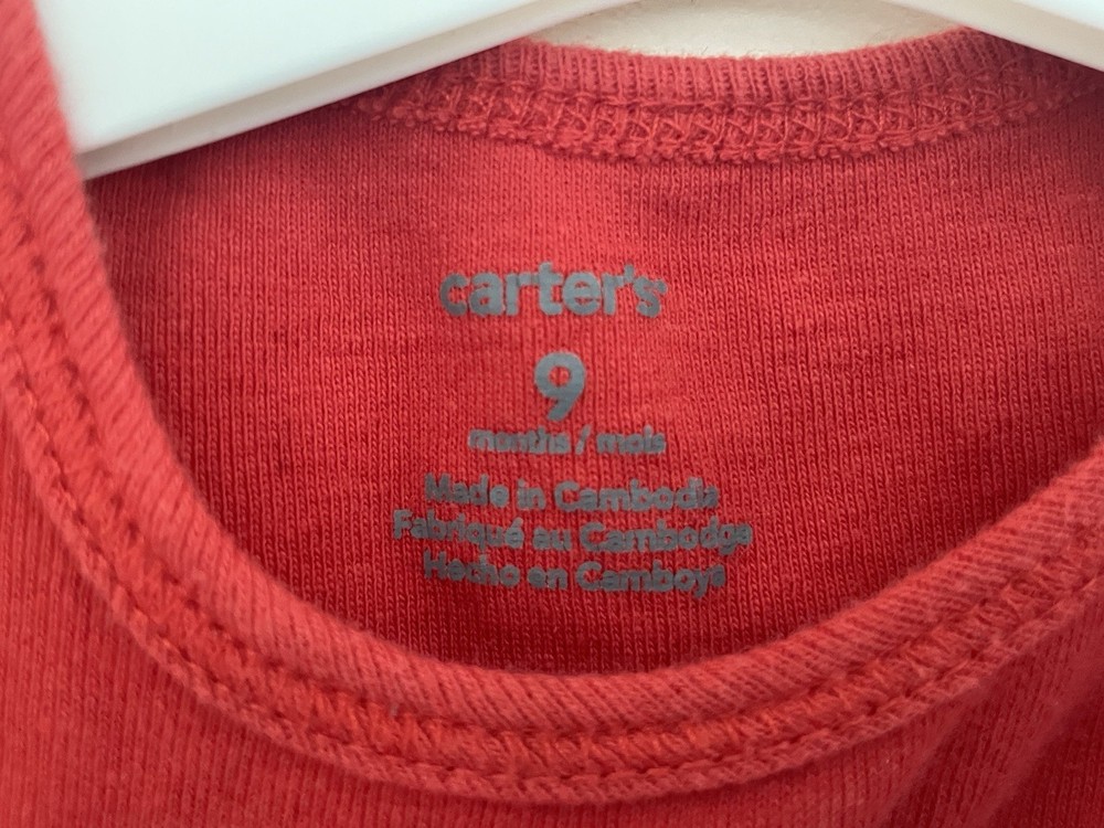Carter's Baby Boys Embroidered Little Hunk Cotton Short Sleeve Bodysuit Red 9M. Condition is pre-owned. Smoke free, pet free home. Shipped via USPS Ground Advantage. In good condition. There are light stains on the front. Free of rips.