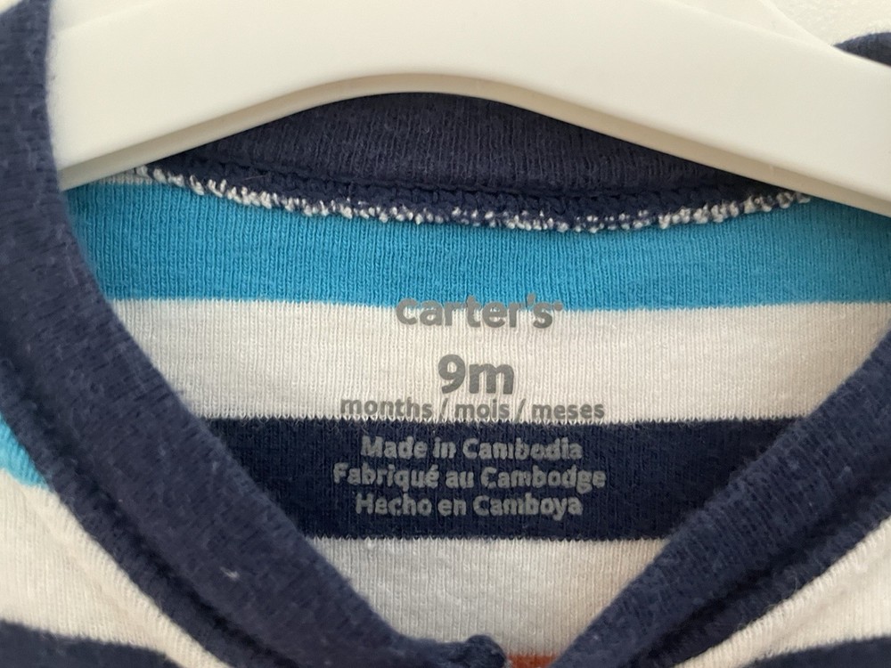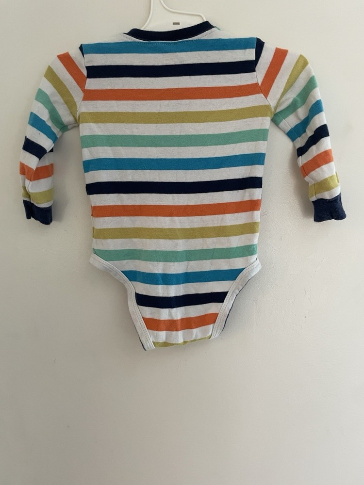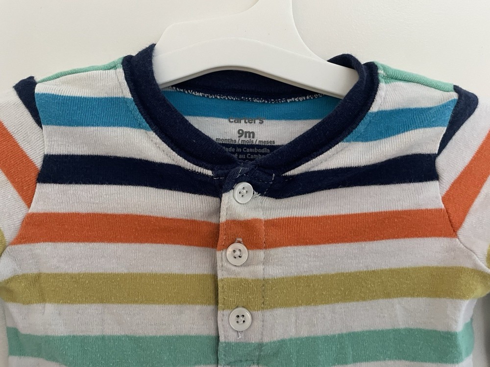 Carter's Baby Boys Colorful Rainbow Striped Henley Long Sleeve Bodysuit Multi 9M. Condition is pre-owned. Smoke free, pet free home. Shipped via USPS Ground Advantage. In very good condition. Free of rips or stains.