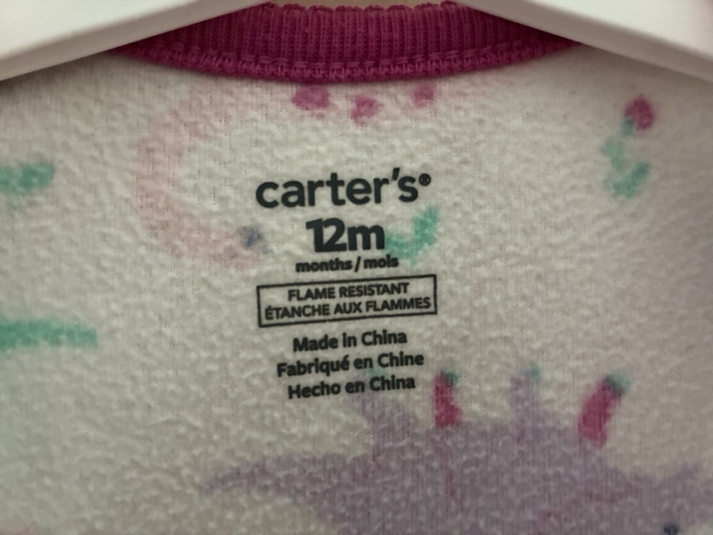 Carters Baby Girl 1-Piece Cozy Fleece Cute Dinosaurs Fleece Zip-Up PJs White 12M. Condition is pre-owned. Smoke free, pet free home. Shipped via USPS Ground Advantage. In very good condition. Free of rips or stains.