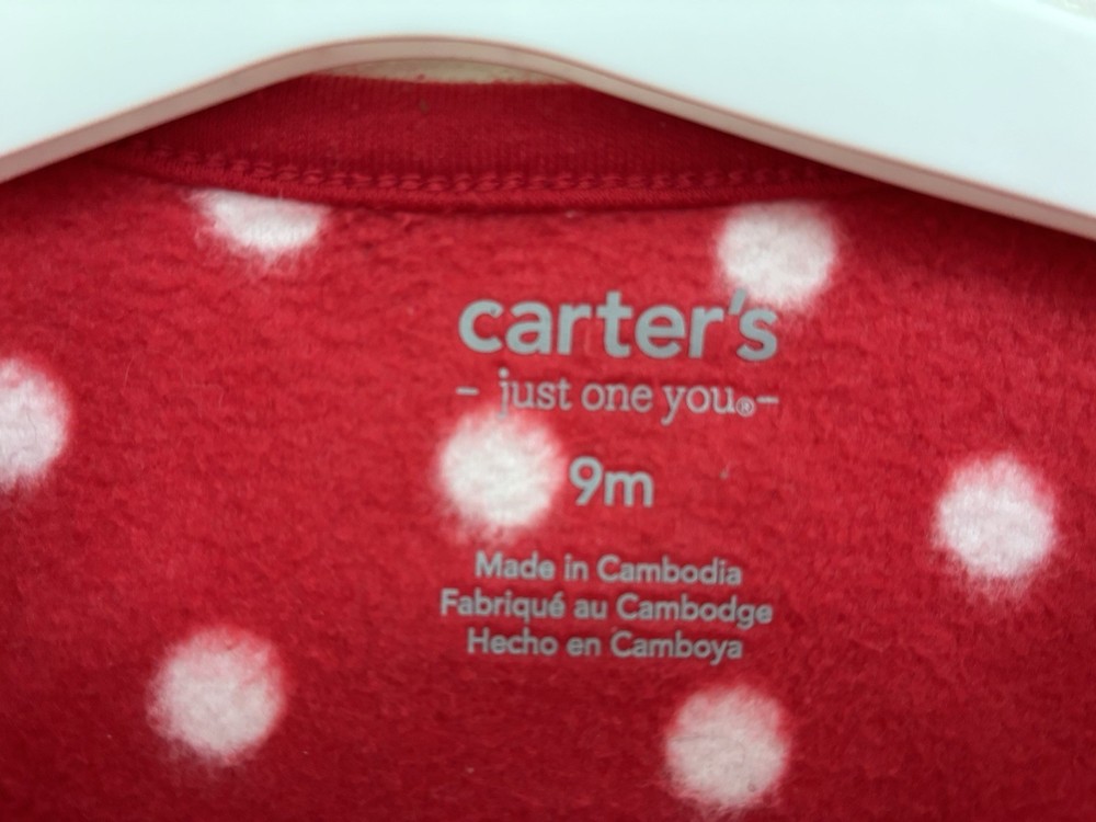 Carter's Baby Girl 1-Piece Cute Reindeer Polka Dot Christmas Sleep & Play Red 9M. Condition is pre-owned. Smoke free, pet free home. Shipped via USPS Ground Advantage. In very good condition. Free of rips or stains.