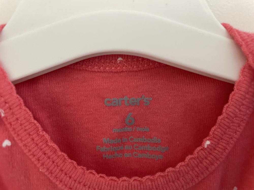 Carters Baby Girl Allover Small Hearts 100% Cotton Short Sleeve Bodysuit Pink 6M. Condition is pre-owned. Smoke free, pet free home. Shipped via USPS Ground Advantage. In very good condition. Free of rips or stains.