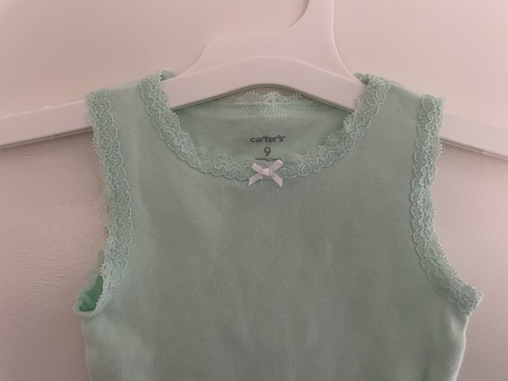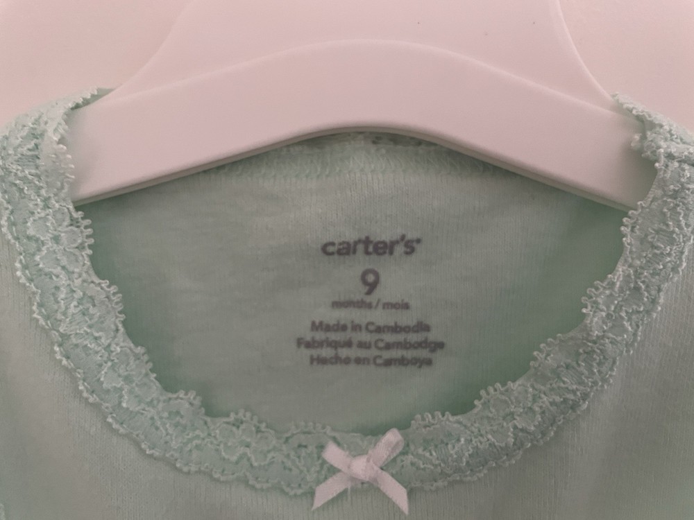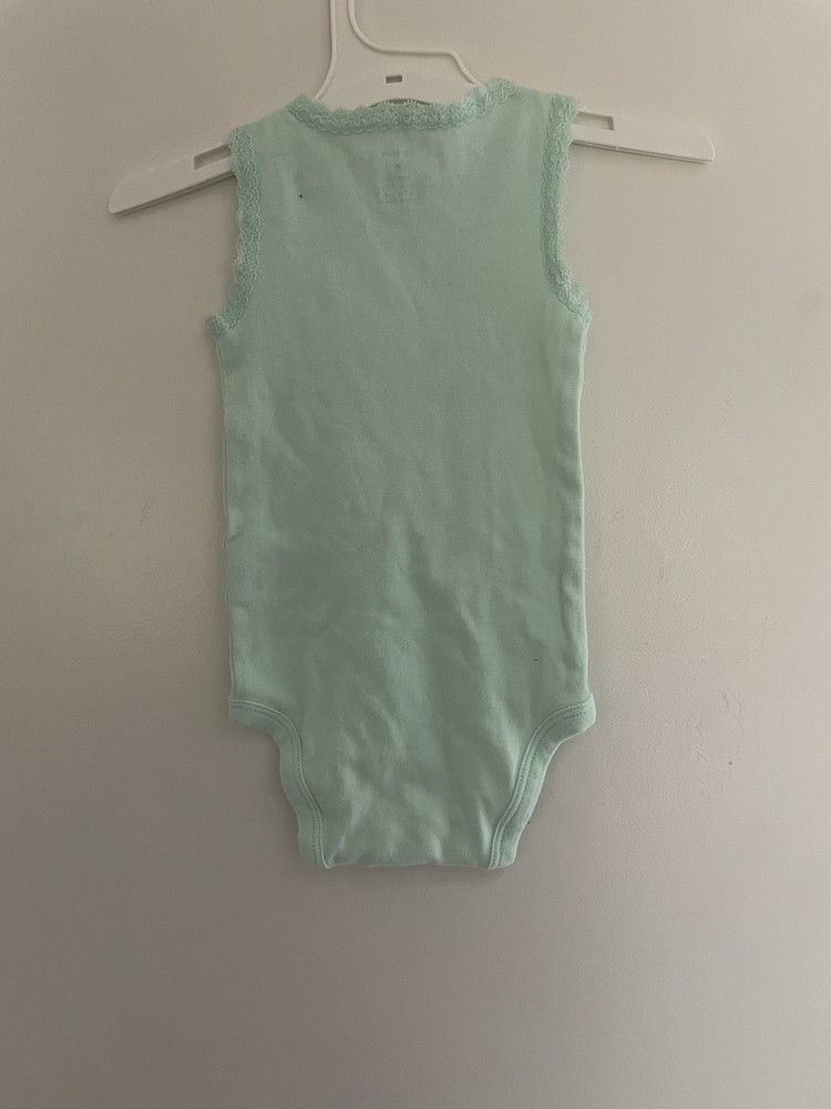 Style: Bodysuit Fabric Type: Lace Set Includes: Bodysuit Pattern: Solid Seller Notes: “In very good condition. Free of rips or stains.” Size: 9 Months Season: Spring, Summer Occasion: Casual Brand: Carter's Color: Blue Garment Care: Machine Washable Number of Pieces: 1 Piece Sleeve Length: Sleeveless Material: 100% Cotton Country of Origin: Cambodia Accents: Bow, Lace Features: Comfort, Easy Care, Lightweight, Stretch Type: One-Piece Department: Girls Closure: Snap