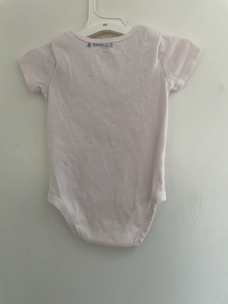 Carter's Baby Girls Classic Striped 100% Cotton Short Sleeve Bodysuit Pink 18M. Condition is pre-owned. Smoke free, pet free home. Shipped via USPS Ground Advantage. In good condition. There is a light stain on the front. Free of rips.
