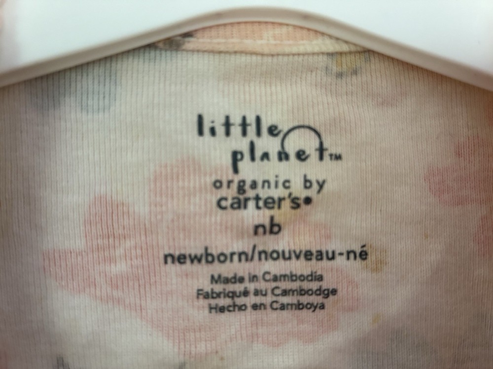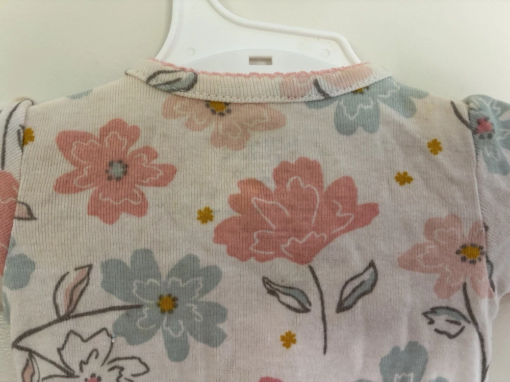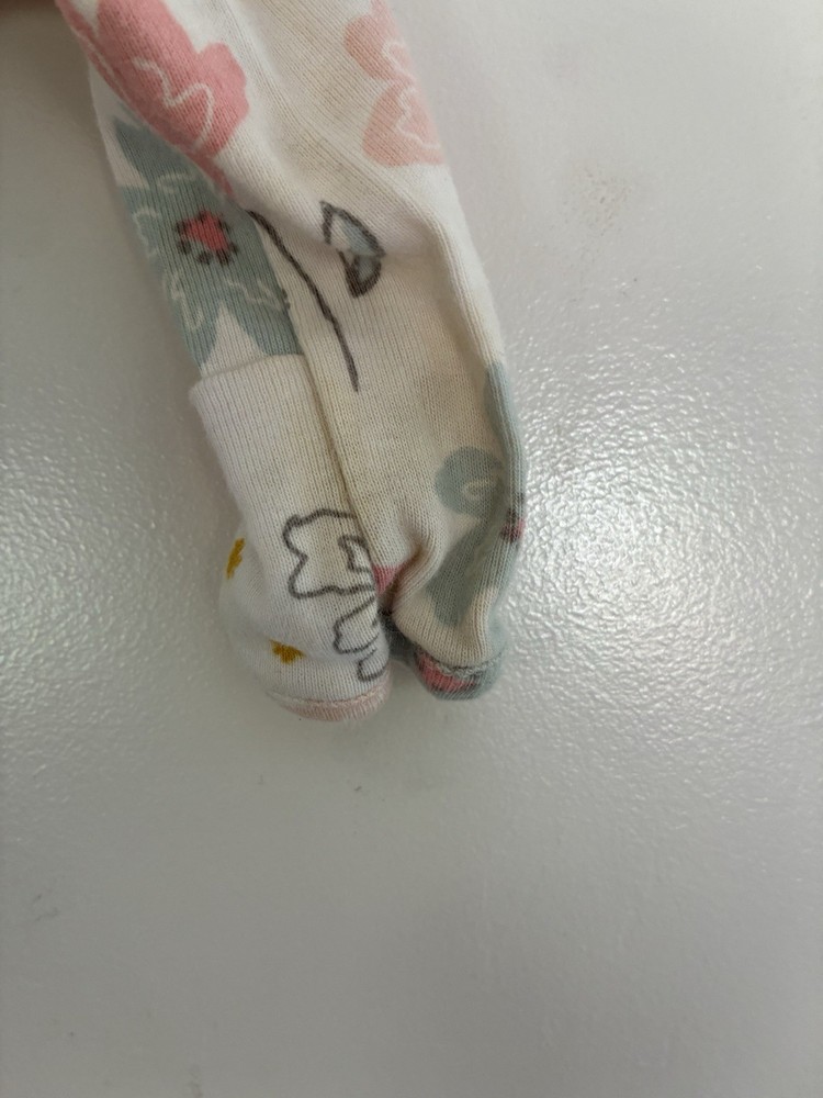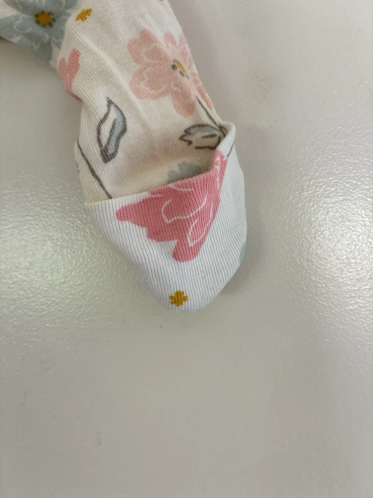 Closure: Snap Sleeve Length: Long Sleeve Number of Pieces: 1 Piece Department: Girls Size: Newborn Brand: Carter's Country of Origin: Cambodia Season: Fall, Spring, Summer, Winter Color: White Material: 100% Cotton Garment Care: Machine Washable Type: One-Piece Pattern: Floral Style: Sleep & Play Occasion: Casual Theme: Flower Features: Comfort, Easy Care, Lightweight, Stretch, Fold over mittens