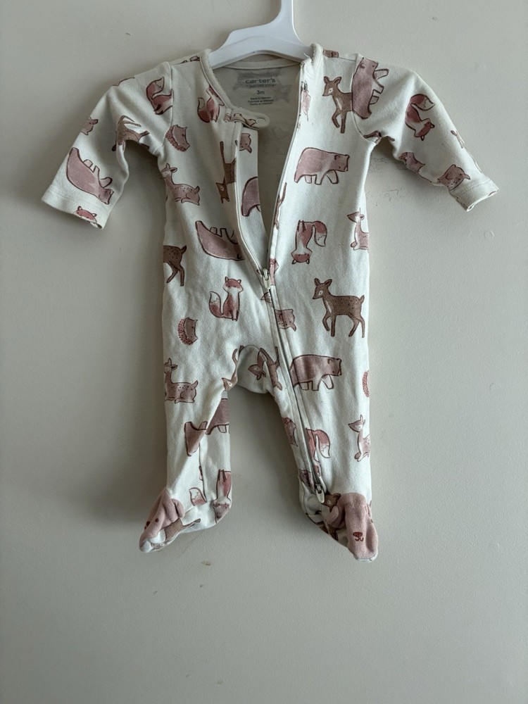 Carter's Baby Girls Critters Cotton 2-Way Zip Long Sleeve Sleep & Play Beige 3M. Condition is pre-owned. Smoke free, pet free home. Shipped via USPS Ground Advantage. In very good condition. Free of rips or stains.