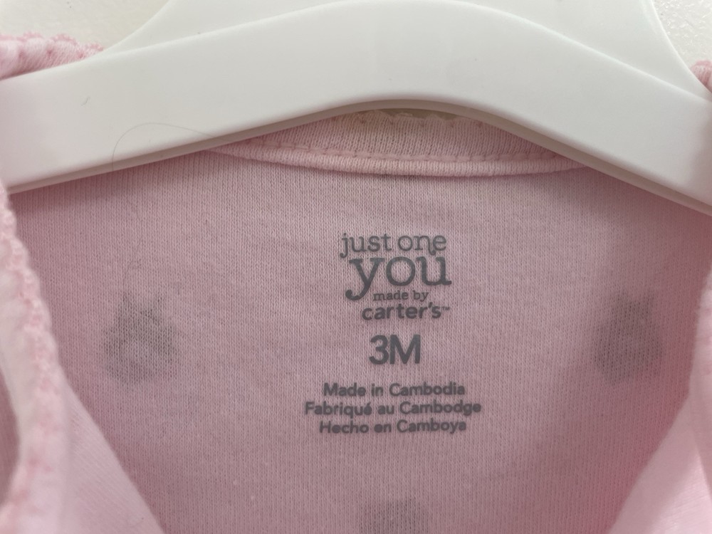 Theme: Animals, Bear Material: 100% Cotton Sleeve Length: Long Sleeve Closure: Snap Country of Origin: Cambodia Color: Pink Brand: Carter's Pattern: Animal Print Style: Sleep & Play Garment Care: Machine Washable Accents: Lace, Pleated Number of Pieces: 1 Piece Season: Fall, Spring, Winter Type: One-Piece Features: Comfort, Easy Care, Lightweight, Stretch Seller Notes: “In very good condition. Free of rips or stains.” Department: Girls Size: 3 Months Occasion: Casual