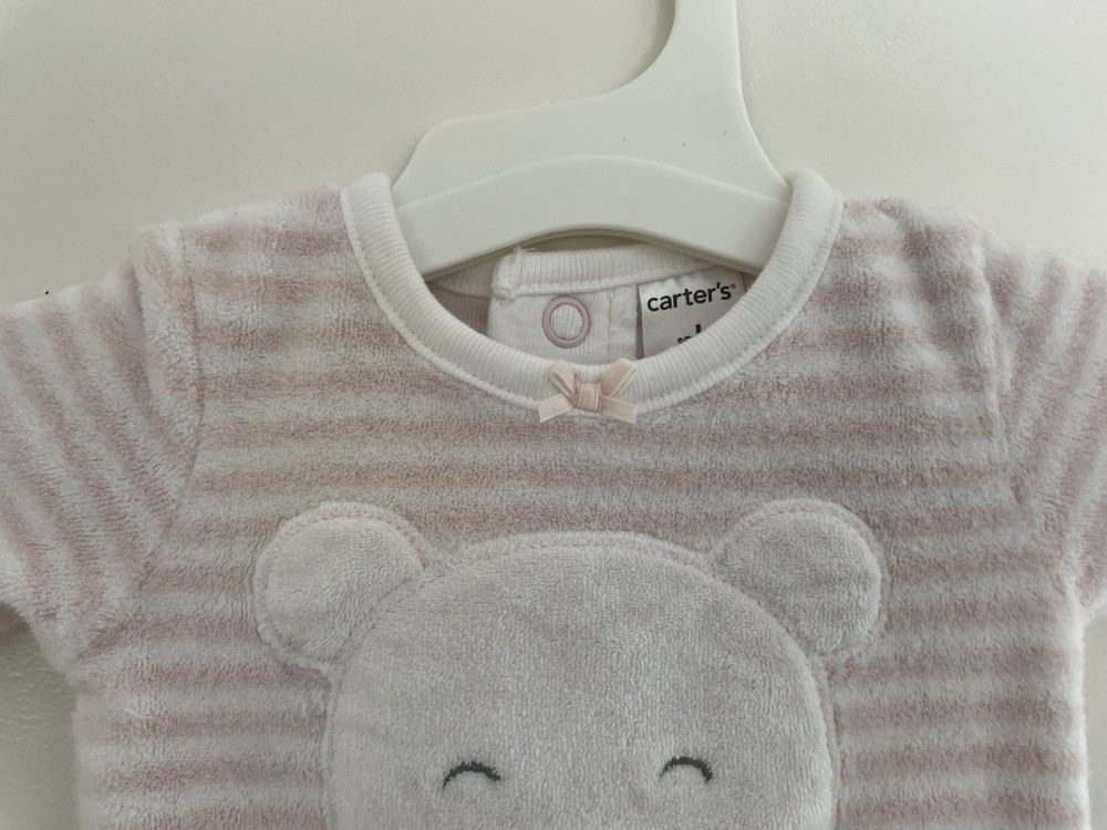 Carter's Baby Girls Cute Bear Striped Cotton French Terry Sleep & Play Pink NB. Condition is pre-owned. Smoke free, pet free home. Shipped via USPS Ground Advantage. In very good condition. Free of rips or stains.