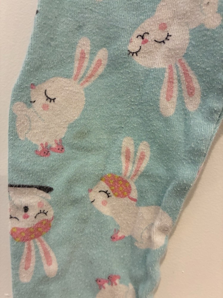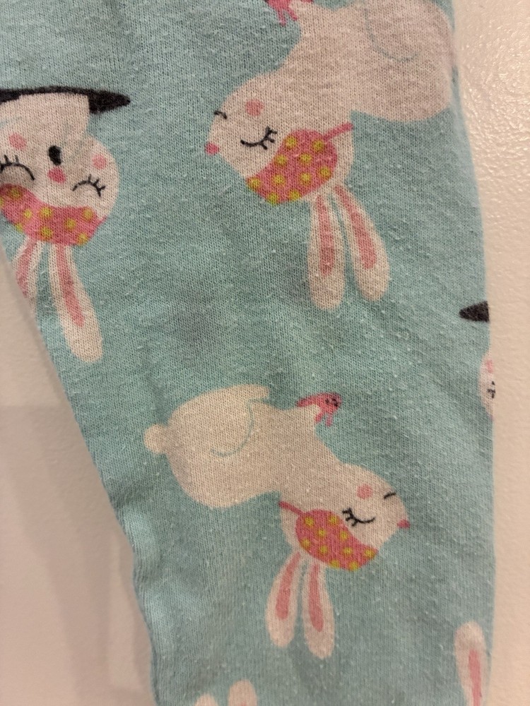 Carter's Baby Girls Cute Bunny Rabbit 100% Cotton Pull On PJ Pants Lt Blue 18M. Condition is pre-owned. Smoke free, pet free home. Shipped via USPS Ground Advantage. In fair condition. This is for the pants ONLY. Does not include a top. There are light stains on the front and back. Free of rips.