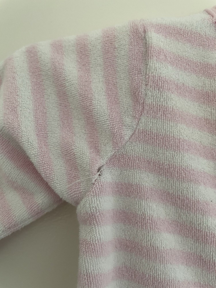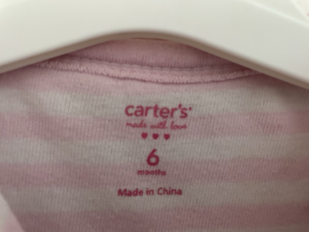 Carter's Baby Girls Cute Cat Applique Striped Terry Snap-Up Sleep & Play Pink 6M. Condition is pre-owned. Smoke free, pet free home. Shipped via USPS Ground Advantage. In good condition. There is a small hole at the seam of the sleeve. Free of stains.