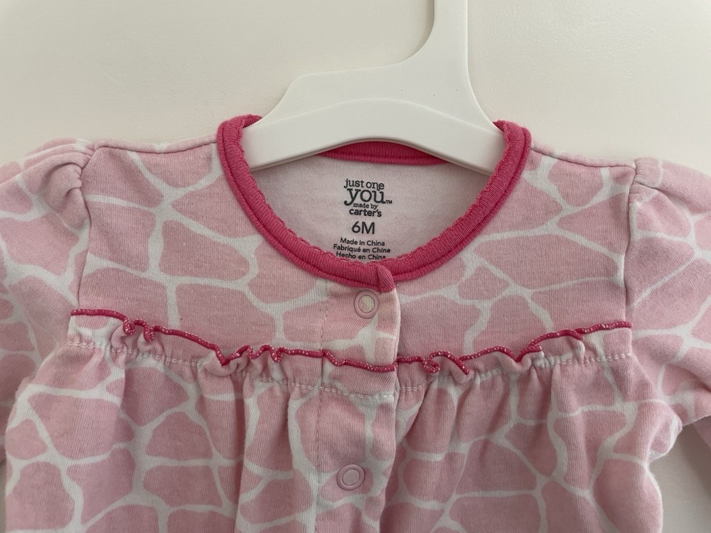 Type: One-Piece Sleeve Length: Long Sleeve Color: Pink Features: Comfort, Easy Care, Lightweight, Stretch Size: 6 Months Garment Care: Machine Washable Closure: Snap Country of Origin: China Occasion: Casual Brand: Carter's Seller Notes: “In good condition. There are light stains on the back. Free of rips.” Theme: Animals, Bird, Elephant, Owl Character: Owl Style: Sleep & Play Material: 100% Cotton Department: Girls Pattern: Animal Print Season: Fall, Spring, Winter Accents: Embroidered, Lace, Ruffle Number of Pieces: 1 Piece