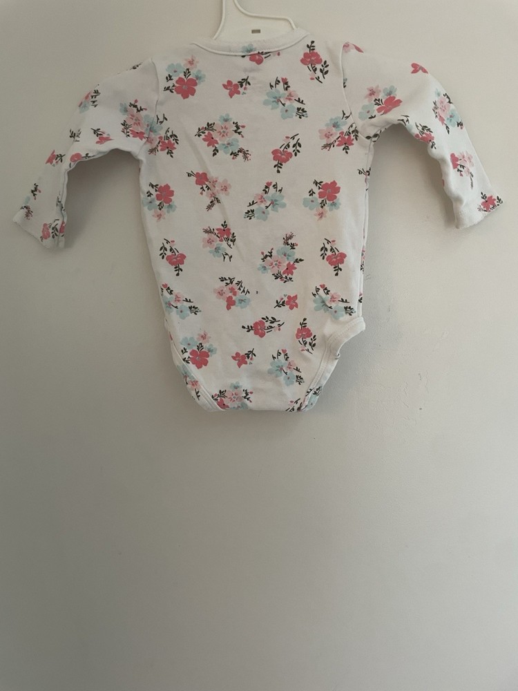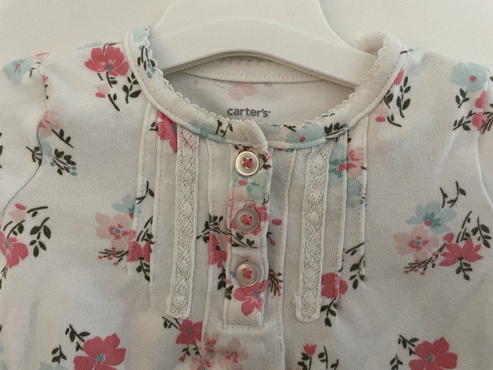 Carter's Baby Girls Floral 100% Cotton Lace Henley Long Sleeve Bodysuit White 6M. Condition is pre-owned. Smoke free, pet free home. Shipped via USPS Ground Advantage. In good condition. There are light stains on the front. Free of rips.