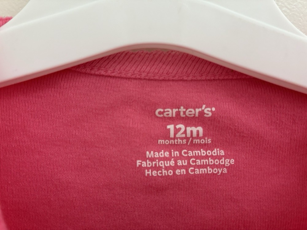 Number of Pieces: 1 Piece Style: Bodysuit Season: Fall, Spring, Winter Size: 12 Months Country of Origin: Cambodia Closure: Snap Sleeve Length: Long Sleeve Type: One-Piece Set Includes: Bodysuit Theme: Dinosaurs Occasion: Casual Color: Pink Pattern: Graphic Print Department: Girls Garment Care: Machine Washable Seller Notes: “In very good condition. Free of rips or stains.” Accents: Bow, Glitter, Lace, Tulle skirt on dinosaur Features: Comfort, Easy Care, Lightweight, Stretch Material: 100% Cotton Brand: Carter's