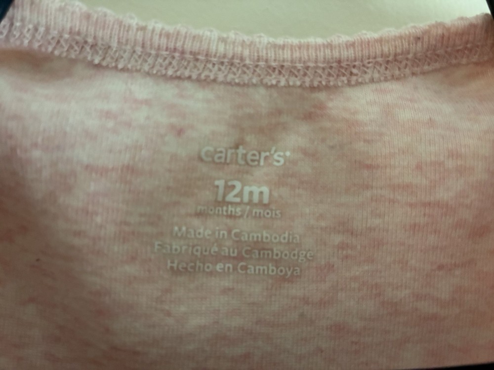Pattern: Graphic Print Style: Bodysuit Set Includes: Bodysuit Neckline: Round Neck Sleeve Length: Short Sleeve Material: 60% cotton, 40% polyester Country of Origin: Cambodia Type: One-Piece Fabric Type: Blended Fabric Size: 12 Months Accents: Glitter Garment Care: Machine Washable Seller Notes: “In very good condition. Free of rips or stains.” Season: Fall, Spring, Summer Number of Pieces: 1 Piece Color: Pink Features: Comfort, Easy Care, Lightweight, Stretch Theme: Animals, Cat, Heart, Love Brand: Carter's Occasion: Casual Closure: Snap Department: Girls