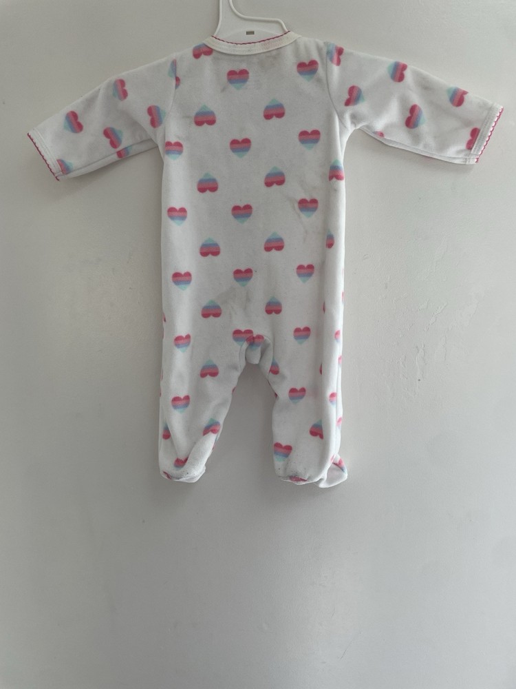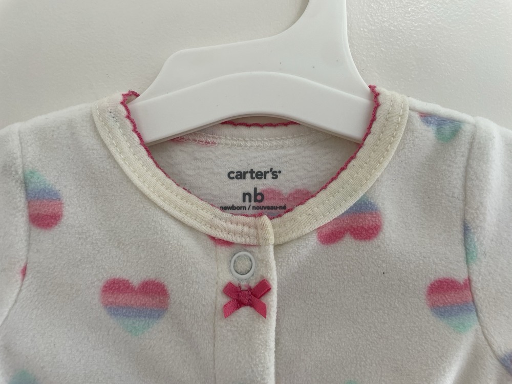 Carter's Baby Girls Rainbow Heart Soft Cozy Fleece Snap-Up Sleep & Play White NB. Condition is pre-owned. Smoke free, pet free home. Shipped via USPS Ground Advantage. In good condition. There are light stains on the front. Free of rips.