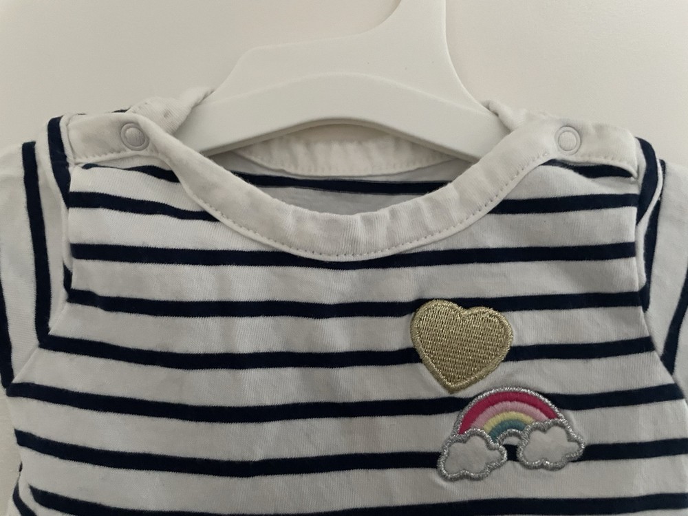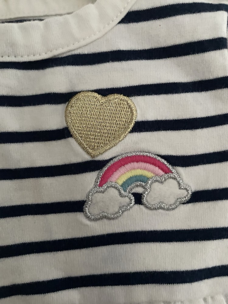 Carter's Baby Girls Rainbow Striped Cotton Short Sleeve Bodysuit Dress Navy 3M. Condition is pre-owned. Smoke free, pet free home. Shipped via USPS Ground Advantage. In very good condition. Free of rips or stains.