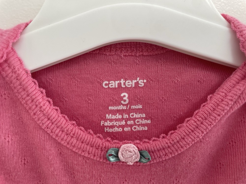 Carter's Baby Girls Solid Pink Flower Lace 100% Cotton Long Sleeve Bodysuit 3M. Condition is pre-owned. Smoke free, pet free home. Shipped via USPS Ground Advantage. In good condition. There is a stain on the sleeve. Free of rips.