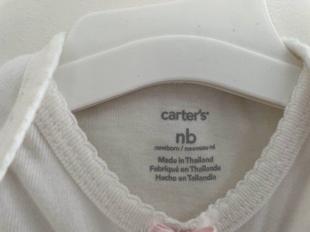 Color: White Department: Girls Features: Comfort, Easy Care, Lightweight, Stretch Garment Care: Machine Washable Size: Newborn Seller Notes: “In very good condition. Free of rips or stains.” Type: One-Piece Occasion: Casual Closure: Snap Material: 100% Cotton Style: Bodysuit Number of Pieces: 1 Piece Set Includes: Bodysuit Brand: Carter's Pattern: Solid Country of Origin: Thailand Sleeve Length: Short Sleeve Season: Spring, Summer Accents: Bow, Lace