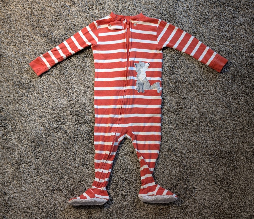 This 4-pack of Carter Based (Carter's, Just One You & Simple Joys) Striped Baby clothes include two 12M Onesies, one Foxy Striped one-piece, and one 12M Striped Onesie. All clothes are washed with wrinkles and NO STAINS.
