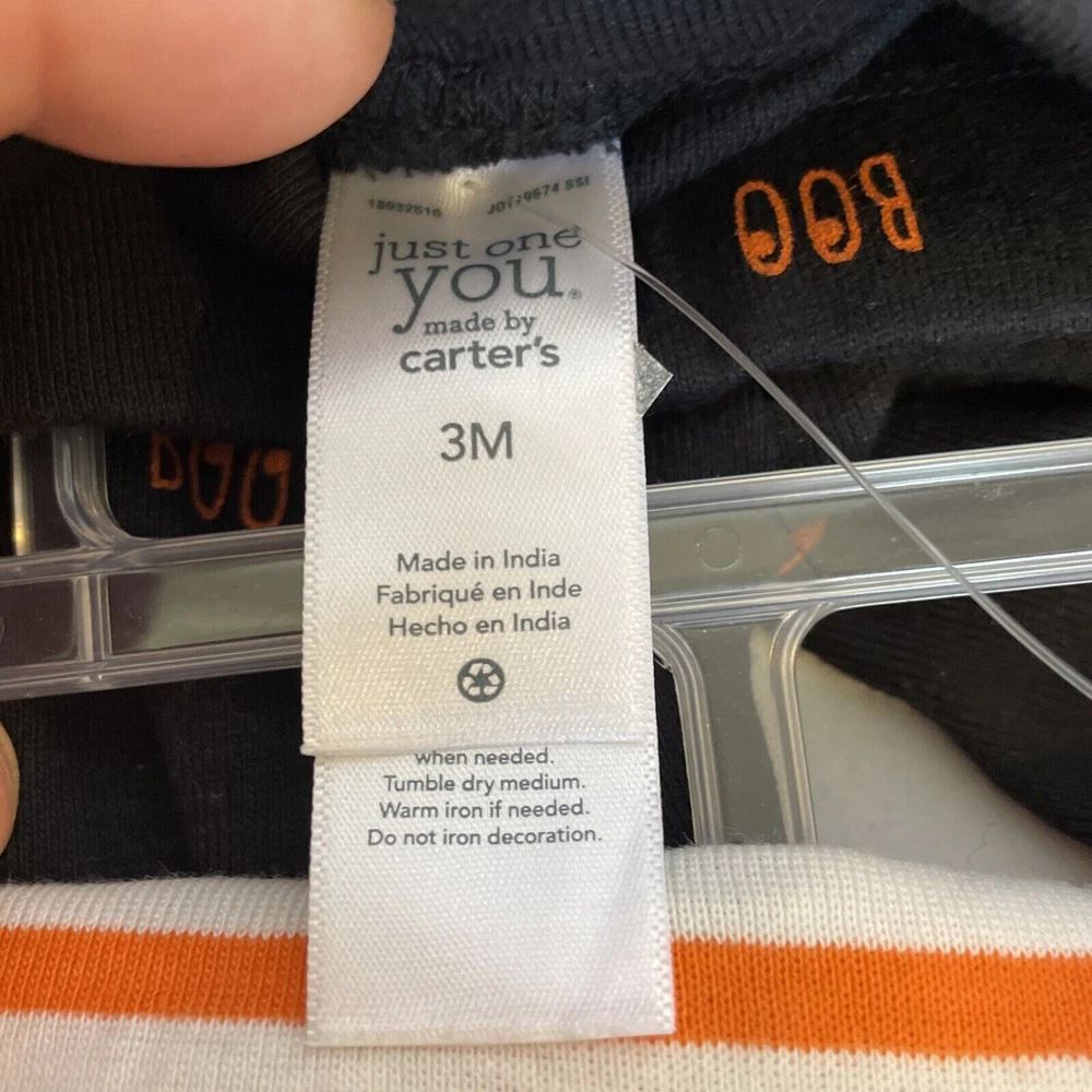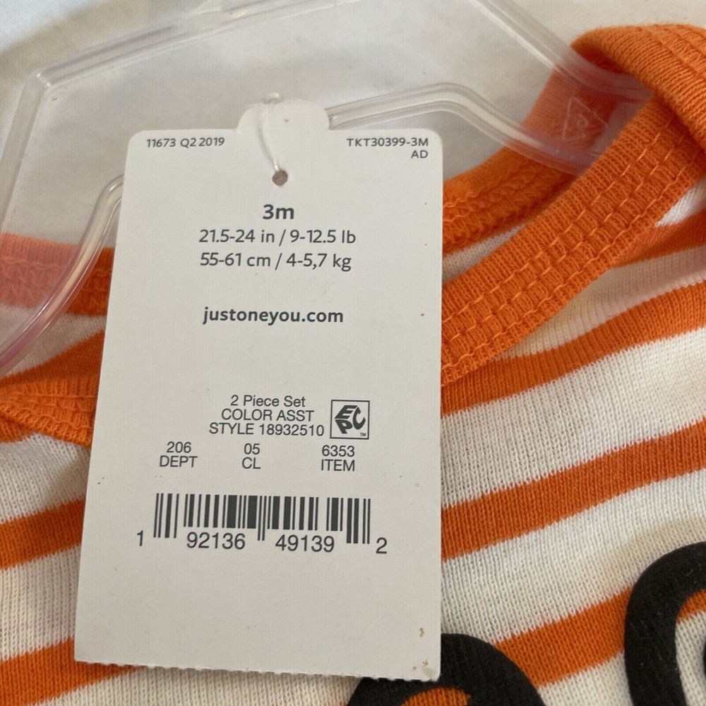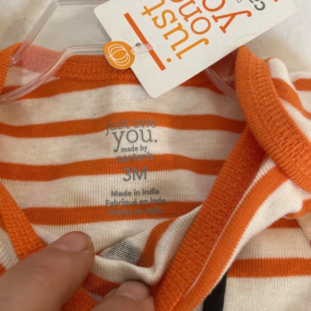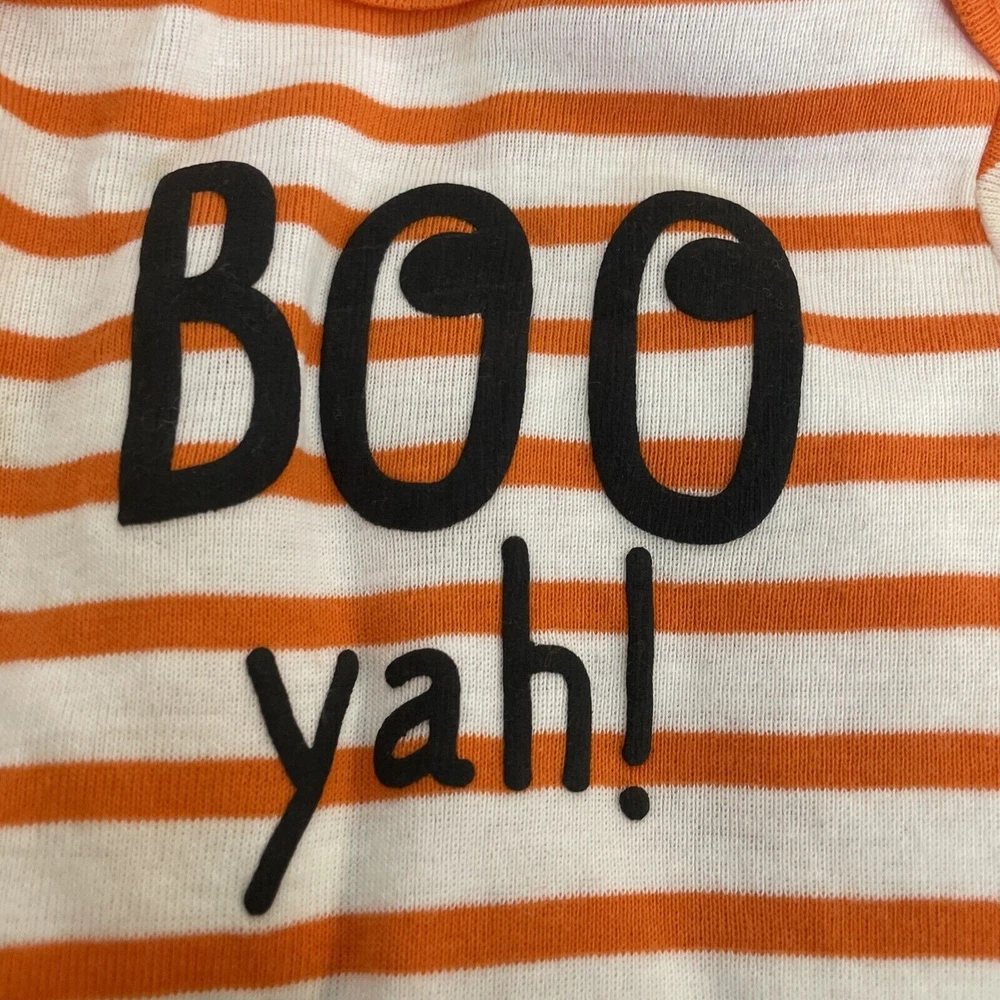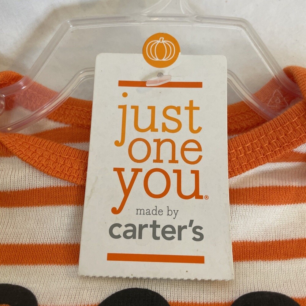Get ready for Halloween with this adorable Carter's two-piece outfit set! The striped bodysuit features the word "Boo Yah", while the black pants have a snap closure and elastic waistband for comfort. Made from soft and breathable cotton knit fabric, this set is perfect for travel, activewear, parties, or casual occasions. The outfit set is suitable for unisex babies and toddlers aged 3 months and is machine washable for easy care. With its fun Halloween theme, this set will make a great addition to any little one's wardrobe. 2-piece set Infant sizes Bodysuit with snap bottom Pants with elastic waist 100% cotton Made in India