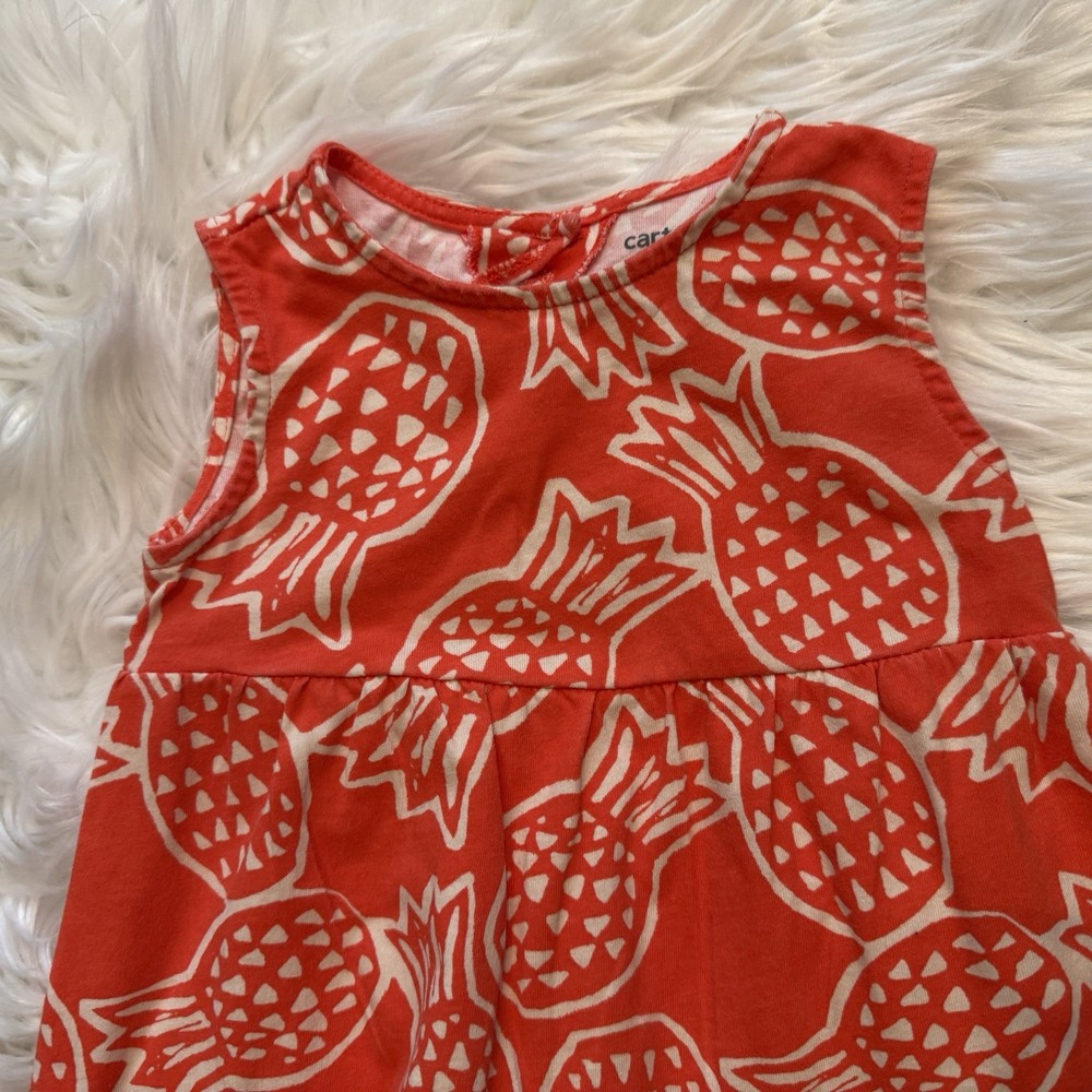 Carter’s baby girl sleeveless dress featuring a bright pineapple print in a fun tropical color. This cute summer dress includes the original matching bloomers, making it a perfect coordinated outfit for warm weather. The lightweight fabric and sleeveless style make it comfortable for everyday wear, vacations, or summer outings. The dress features a tiered skirt design with a cheerful pineapple pattern that adds a playful tropical look. Condition: Like new condition. Size: 18 Months Features: • Sleeveless sundress • Tropical pineapple print • Tiered skirt design • Matching bloomers included • Lightweight and breathable fabric Perfect for summer, beach trips, vacations, photos, or casual everyday wear. Smoke & Pet Free Home Thank you for shopping South Peach Trends! 🍑