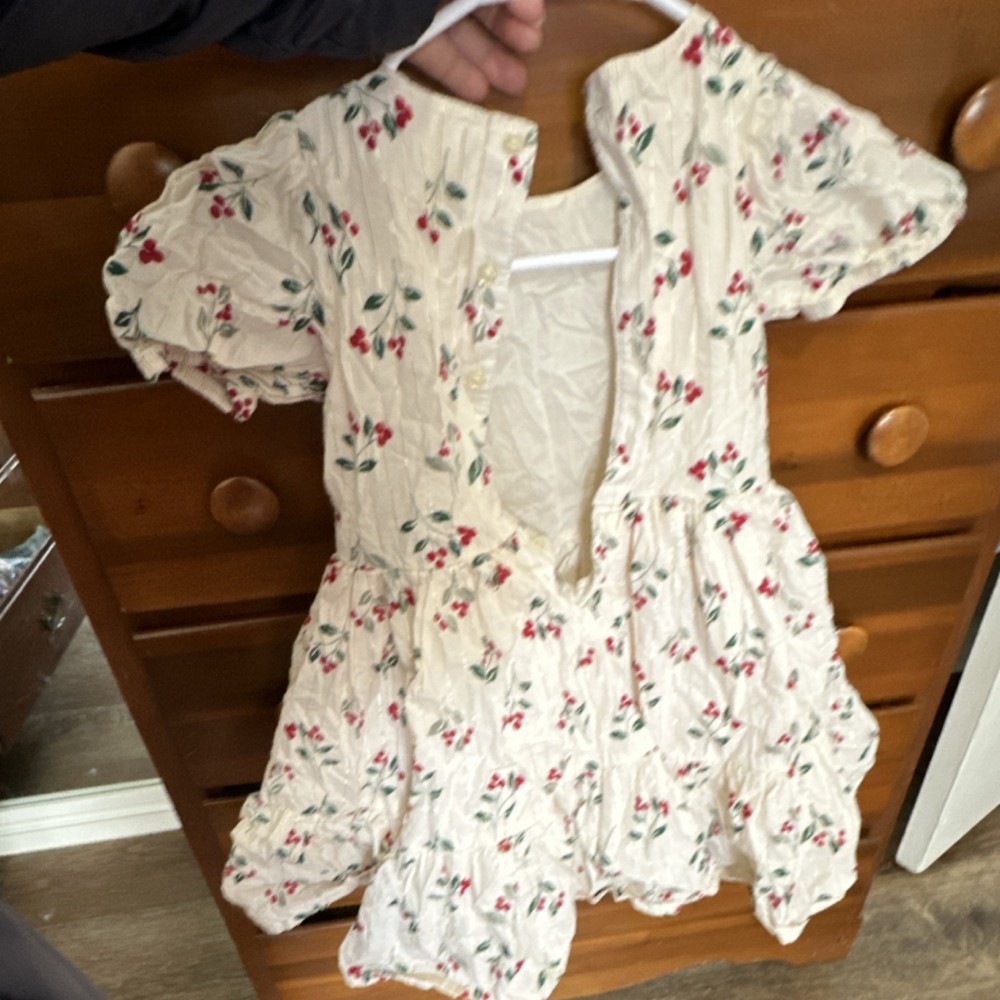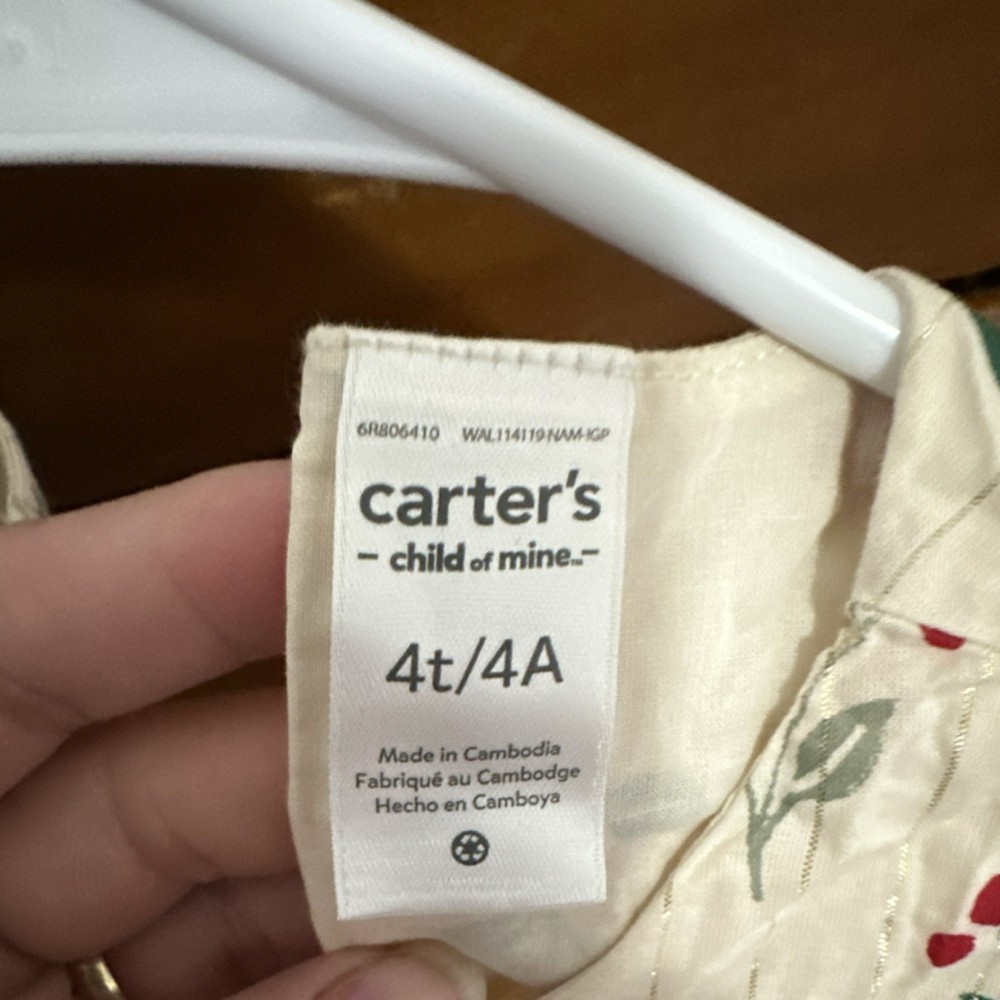 Carter's Girls 4T Fit & Flare Floral Dress Ivory Red Green Cotton Ruffle