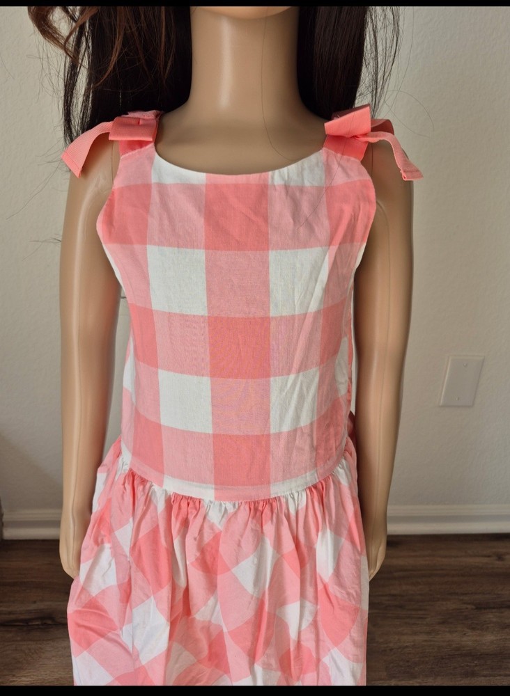 The Carter's Girls Sundress in Pink and White Gingham is a classic and stylish choice for young girls. The sleeveless design with tie shoulders and a square neckline adds a cute and playful touch to the dress. Made from lightweight cotton, this midi-length dress is perfect for casual occasions in the summer and spring seasons. The bow detail at the neckline adds a charming accent to this versatile piece, which is easy to care for with machine washable fabric. Perfect for everyday wear or special events, this Carter's sundress is a must-have for every little girl's wardrobe.