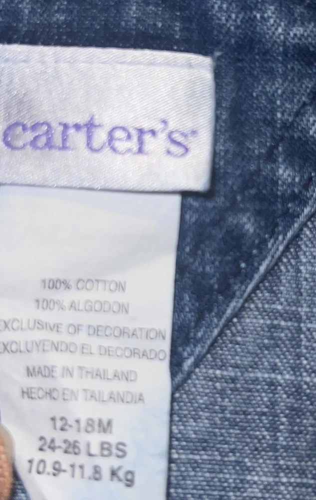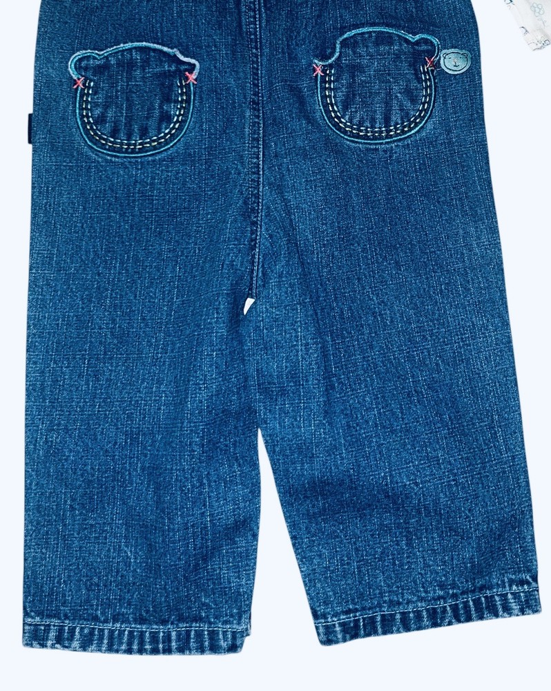Carter's Girls Vintage Denim Overalls Bear Du Jour Heart Size 12-18M 2 Piece Set in very good condition.