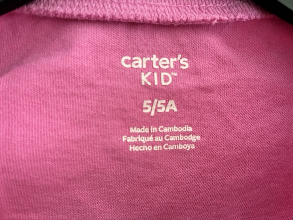 Style: Basic Material: 100% Cotton Occasion: Casual Pattern: Graphic Print Garment Care: Machine Washable Color: Pink Closure: Pullover Size: 5 Fit: Regular Sleeve Length: Long Sleeve Department: Girls Features: Easy Care, Lightweight, Stretch Type: T-Shirt Seller Notes: “In very good condition. Free of rips or stains.” Country of Origin: Cambodia Brand: Carter's Season: Fall, Spring, Winter Character: Skids Theme: Art, Heart, Love Neckline: Crew Neck