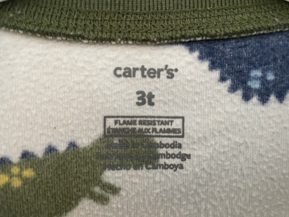 Carter's Toddler Boys 1-Piece Colorful Dinosaurs Cozy Fleece Zip-Up PJs White 3T. Condition is pre-owned. Smoke free, pet free home. Shipped via USPS Ground Advantage. In good condition. Free of rips or stains.