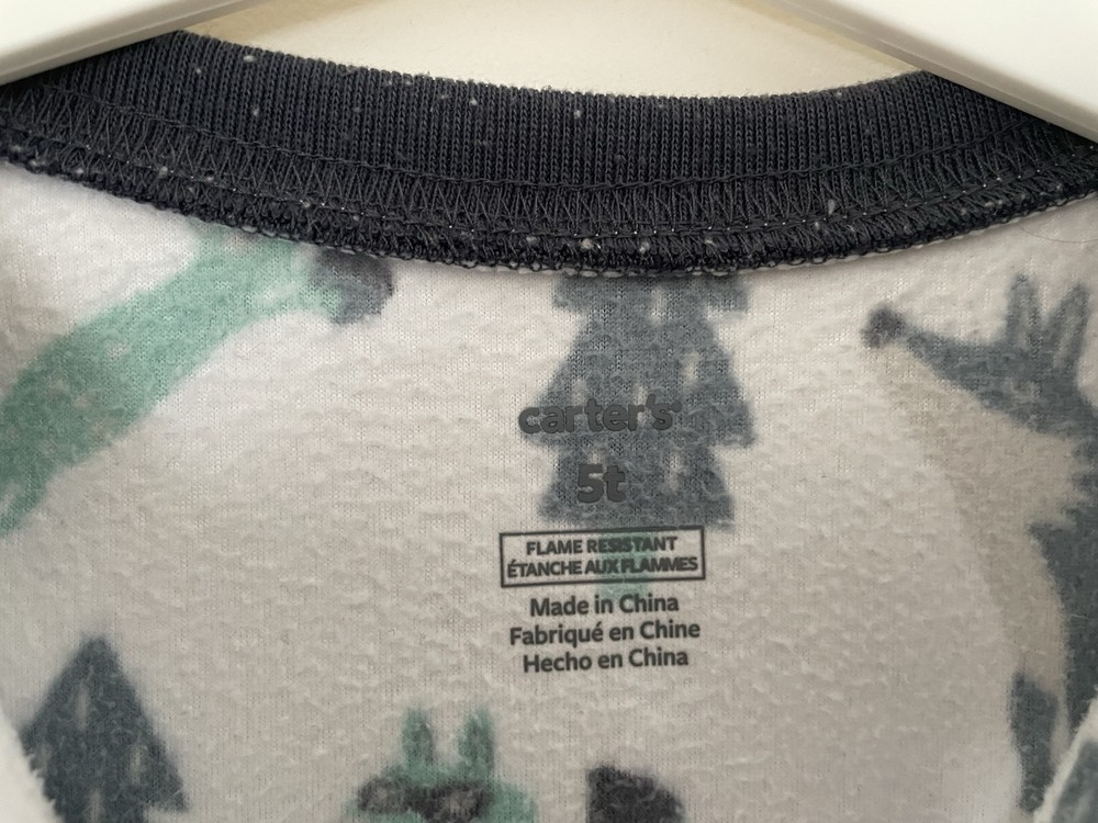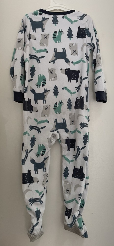 Carter's Toddler Boys 1-Piece Cute Animals Cozy Fleece Long Sleeve PJs White 5T. Condition is pre-owned. Smoke free, pet free home. Shipped via USPS Ground Advantage. In good condition. There are light stains on the front. Free of rips.
