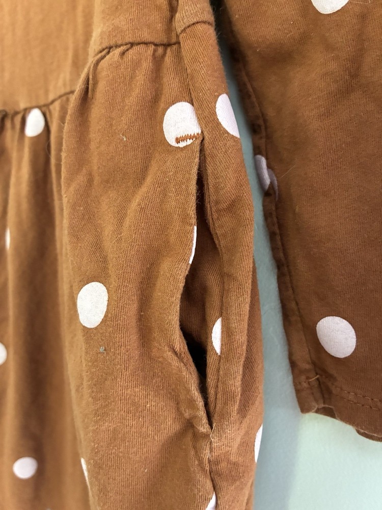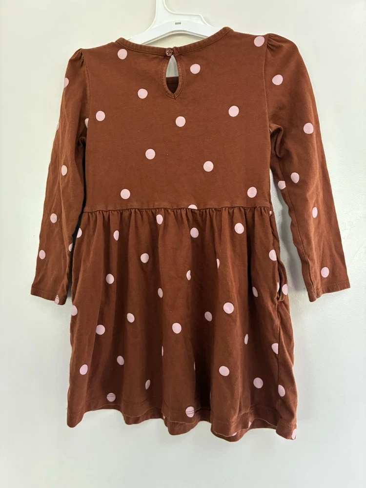Carter's Toddler Girls Big Pink Polka Dot 100% Cotton Fit & Flare Dress Brown 4T. Condition is pre-owned. Smoke free, pet free home. Shipped via USPS Ground Advantage. In fair condition. There is a small hole on the front where the fabric came apart at the seams. There are also stains on the front of the dress.