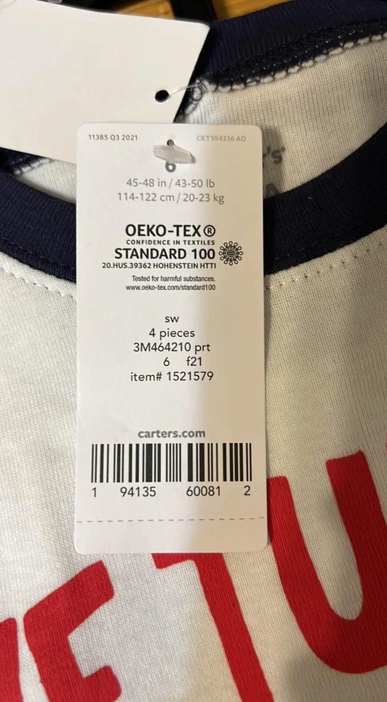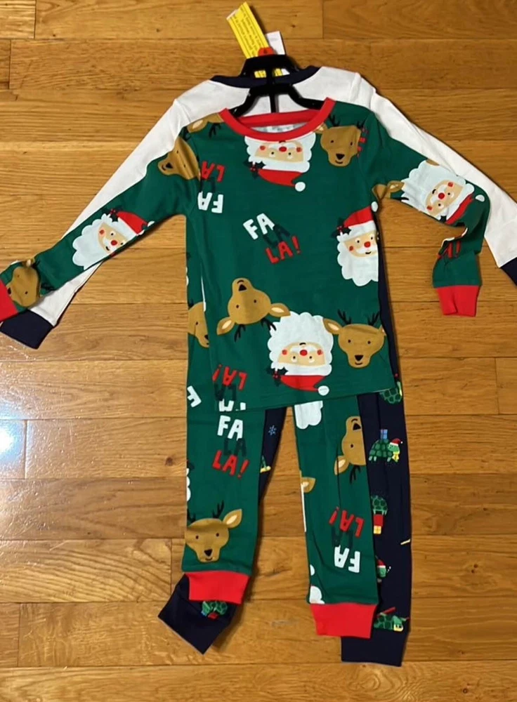Size: 6 Department: Boys Brand: Carter's Number of Pieces: 4 Piece Color: Multicolor Theme: Christmas Material: Cotton Character: Boy Type: Pajama Set