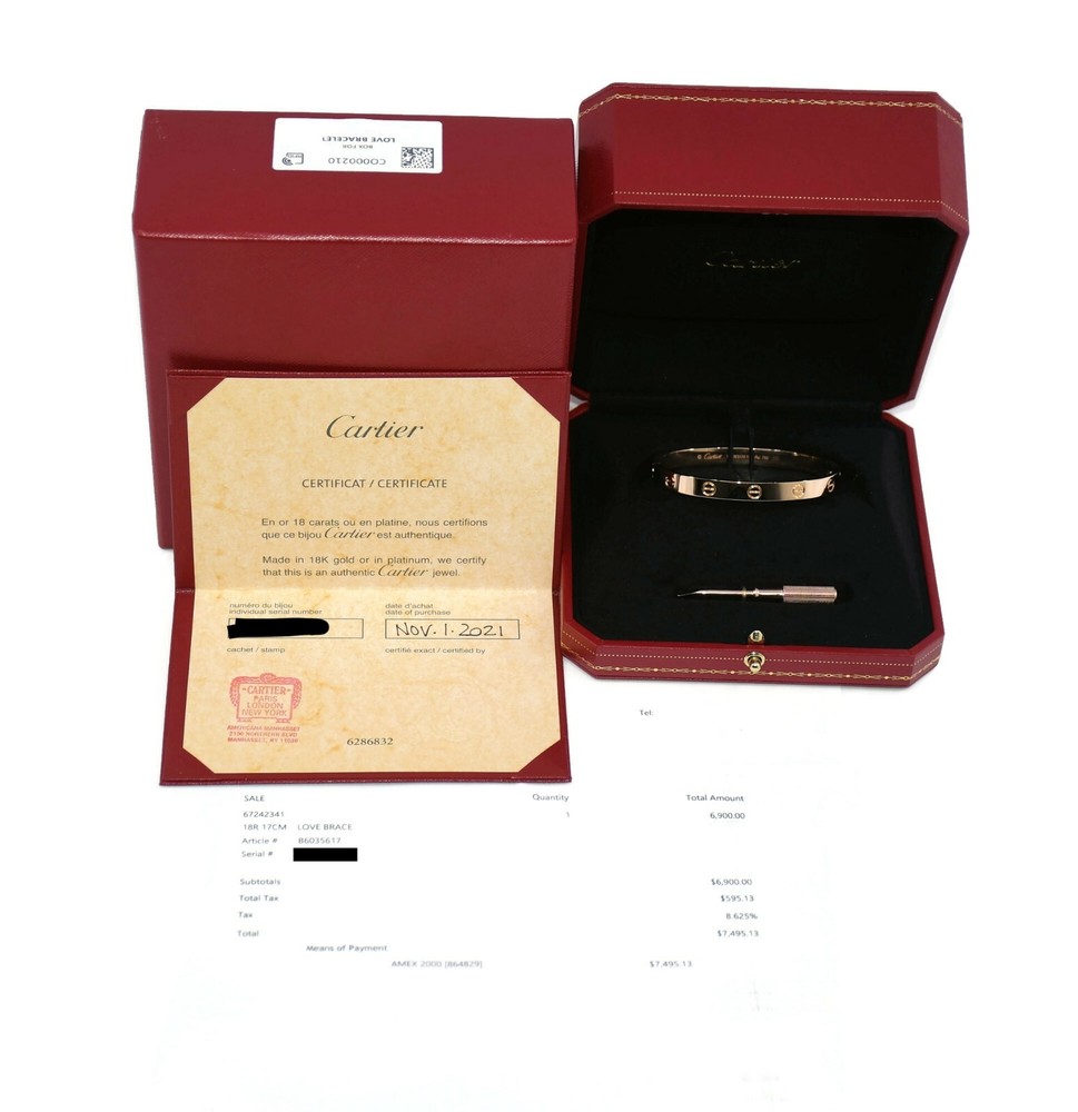 CARTIER 18K ROSE GOLD LOVE BRACELET SIZE:17 SKU:12-24 COMES WITH PURCHASE RECEIPT 100% AUTHENTIC WITH BOX AND CERTIFICATE