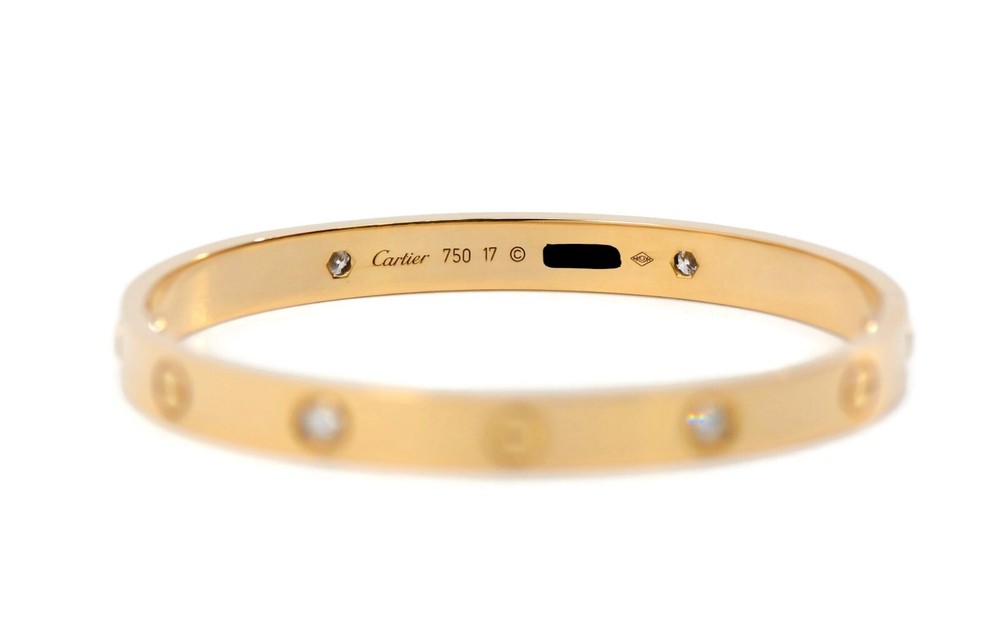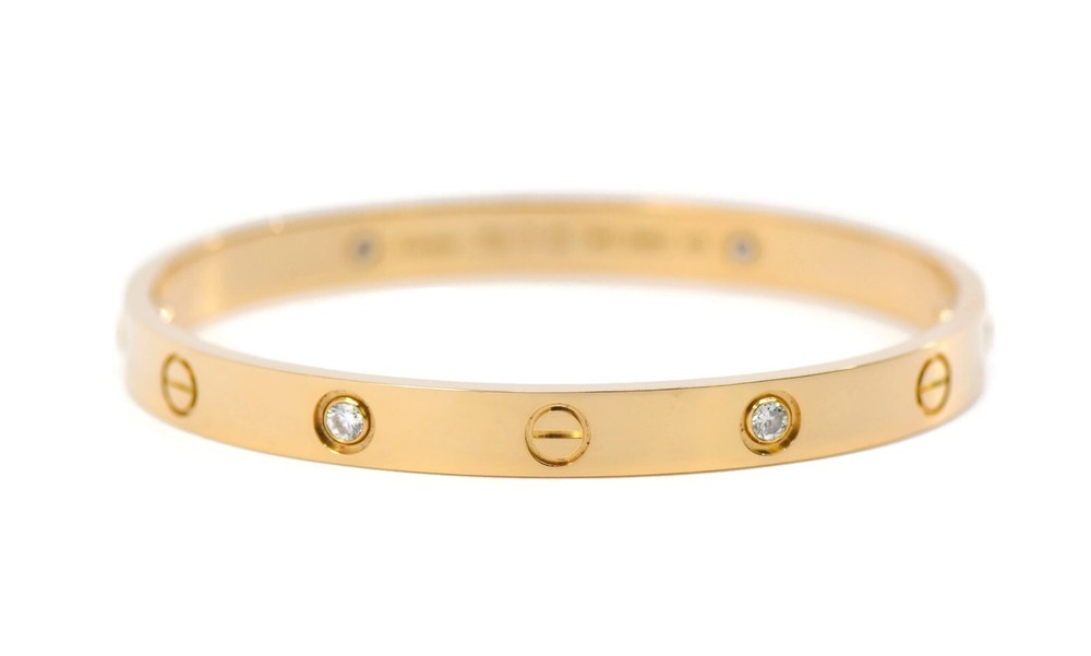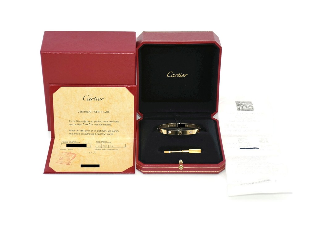 CARTIER 4 DIAMOND 18K YELLOW GOLD LOVE BRACELET SIZE:17 SKU:6-25 COMES WITH PURCHASE RECEIPT 100% AUTHENTIC WITH BOX AND CERTIFICATE