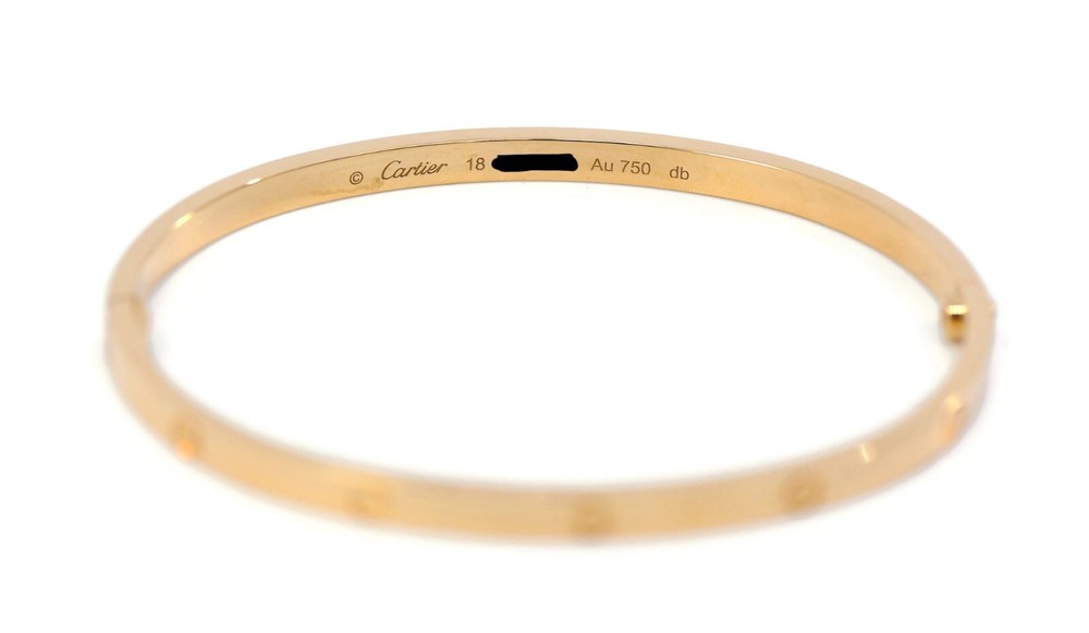 CARTIER 18K YELLOW GOLD LOVE BRACELET SIZE:18 SMALL MODEL SKU:5-25/4 COMES WITH PURCHASE RECEIPT 100% AUTHENTIC WITH BOX AND CERTIFICATE