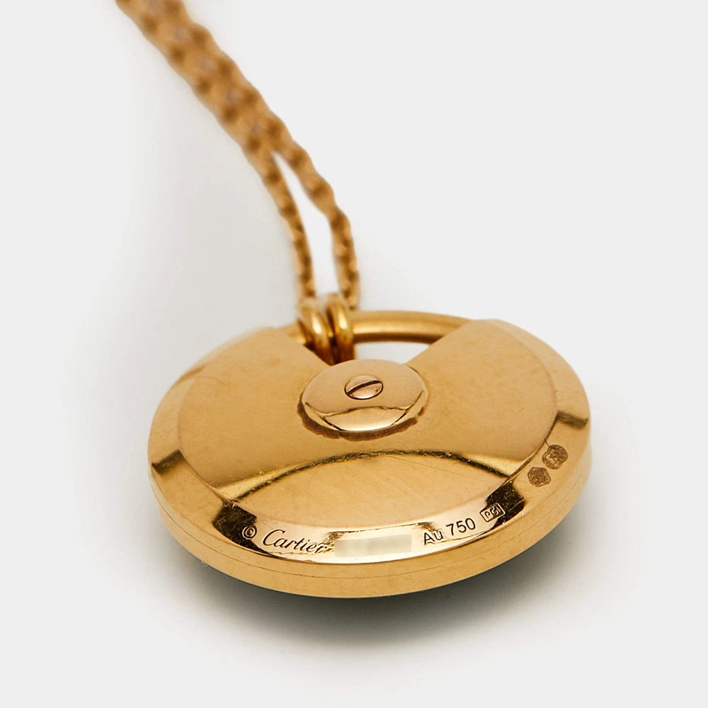 Our eBay Store About Us Contact Us Add to Favorite Sellers Cartier Amulette De Cartier Malachite Diamond 18k Rose Gold Pendant Necklace A glossy malachite disc framed in rose gold sits at the centre of this Amulette pendant, with a single diamond set like a tiny spark. The piece feels talisman-like, something you instinctively touch while waiting for a call or adjusting your jacket. Product Details Brand Cartier Includes The Luxury Closet Packaging Certified by The Luxury Closet This item has gone through a detailed authentication process overseen by our experts. We offer a lifetime guarantee of authenticity on all our items. How We Check The in-house team of experts at The Luxury Closet is highly trained to verify the authenticity and the condition of the luxury products. They ensure that only 100% authentic items are put on sale.The evaluation process is unique with its own mix of assessment criteria and differs according to the category. Each item is evaluated based on the following combination of hallmarks, hardware, stitching, symmetry, material, craftsmanship, stamping, codes, hologram stickers, and packaging. Our authenticators also check if the items have been modified or amended (e.g., aftermarket diamonds, replaced batteries, repaired bags, etc.) International Buyers Import duties, taxes and charges are not included in the item price. These charges are the buyers responsibility. Please check with your country’s customs office to determine what these additional cost will be prior to buying.