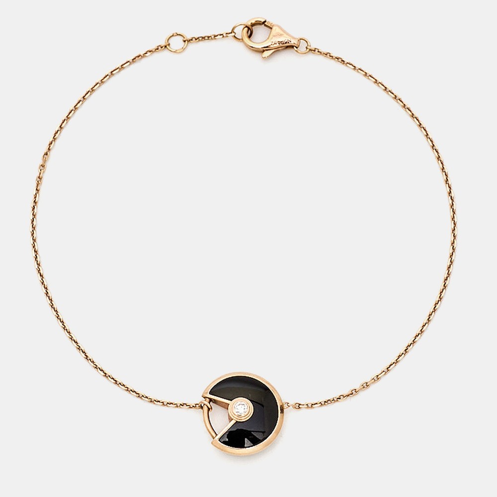 A magnificent offering from Cartiers Amulette de Cartier line. The bracelet comes sculpted from 18k rose gold and it has the signature motif as the charm inlaid with onyx highlighted by a shimmering diamond. Smoothly finished, the desirable creation deserves to be on your wrist.Certified by The Luxury Closet - This item has gone through a detailed authentication process overseen by our experts. We offer a lifetime guarantee of authenticity on all our items. Import duties, taxes and charges are not included in the item price. These charges are the buyers responsibility. Please check with your country’s customs office to determine what these additional cost will be prior to buying. Our eBay Store About Us Contact Us Add to Favorite Sellers Cartier Amulette De Cartier Onyx Diamond 18k Rose Gold XS Model Bracelet $2060.3 A magnificent offering from Cartiers Amulette de Cartier line. The bracelet comes sculpted from 18k rose gold and it has the signature motif as the charm inlaid with onyx highlighted by a shimmering diamond. Smoothly finished, the desirable creation deserves to be on your wrist. Product Details Brand Color Gold Dimensions Material 18k Rose Gold Size XS Outsole Width Outsole Length Heel Height Includes Certified by The Luxury Closet This item has gone through a detailed authentication process overseen by our experts. We offer a lifetime guarantee of authenticity on all our items. How We Check The in-house team of experts at The Luxury Closet is highly trained to verify the authenticity and the condition of the luxury products. They ensure that only 100% authentic items are put on sale.The evaluation process is unique with its own mix of assessment criteria and differs according to the category. Each item is evaluated based on the following combination of hallmarks, hardware, stitching, symmetry, material, craftsmanship, stamping, codes, hologram stickers, and packaging. Our authenticators also check if the items have been modified or amended (e.g., aftermarket diamonds, replaced batteries, repaired bags, etc.) International Buyers Import duties, taxes and charges are not included in the item price. These charges are the buyers responsibility. Please check with your country’s customs office to determine what these additional cost will be prior to buying.