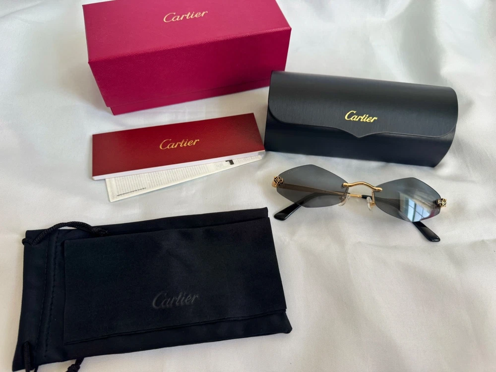 The Cartier CT0433S 001 Gold Sunglasses Panthere are stylish and luxurious designer sunglasses crafted in France. Featuring a geometric shape with a gold metal frame and gray tinted polycarbonate lenses, these sunglasses offer UV400 protection and also have reflective and anti-reflective properties. With a vintage look and adjustable features, these Cartier sunglasses are a fashionable and high-quality accessory for both men and women.