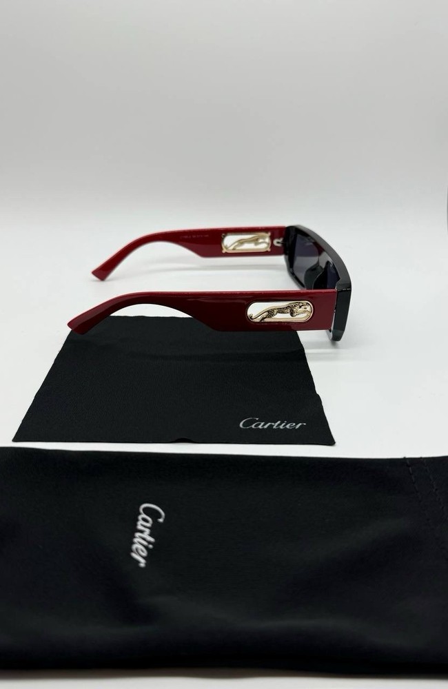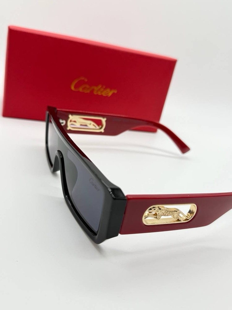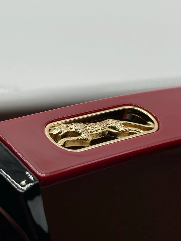Experience the epitome of luxury and style with these Cartier Cheetah design Sunglasses. The red metal frame is accentuated by a bold, square silhouette, catering to both men and women who appreciate a touch of sophistication in their eyewear collection. The tinted black lenses offer UVA protection, ensuring both fashion and function under the sun. Notable for their designer theme, these sunglasses boast a distinct cheetah print that adds an exotic flair to any outfit. The square style is versatile, making these glasses a perfect accessory for a variety of occasions. Whether you're out for a casual day or dressing up for an event, these Cartier sunglasses will elevate your look with their timeless appeal and distinctive design.