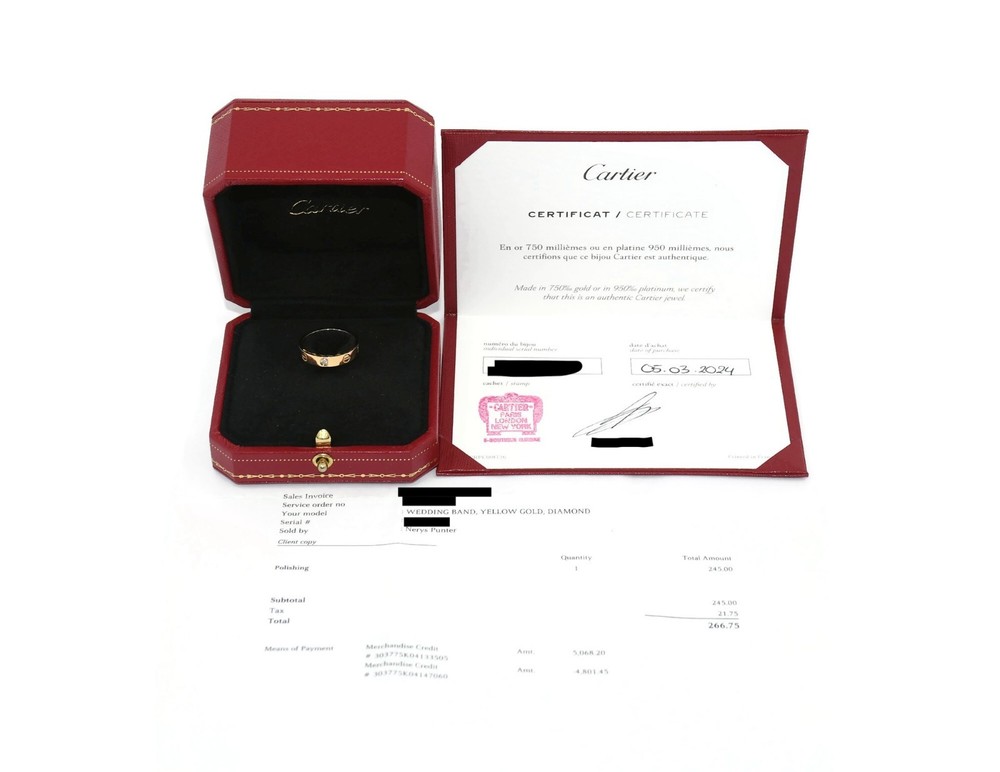 CARTIER DIAMOND 18K YELLOW GOLD LOVE RING SIZE:54/7 WIDTH:4MM SKU:1-26/2 COMES WITH CARTIER SERVICE RECEIPT 100% AUTHENTIC WITH BOX AND CERTIFICATE Recommended products Provided by Cartier Juste Un Clou Diamond SM 18K Yellow Gold Ring Size 54 View product Cartier Diamond 18K Yellow Gold Love Ring Size 55 View product Cartier Trinity Diamond 18K Gold Ring Size 54 View product Cartier 18K Yellow Gold Love Ring Size 64 View product Cartier 18K Yellow Gold Love Ring Size 63 View product Cartier 18K Yellow Gold Love Ring Size 65 View product Cartier 18K Yellow Gold Love Ring Size 62 View product Cartier SM 18K White Gold Love Ring Size 59 View product