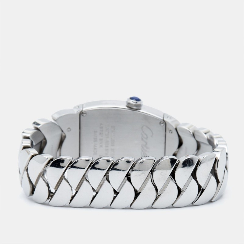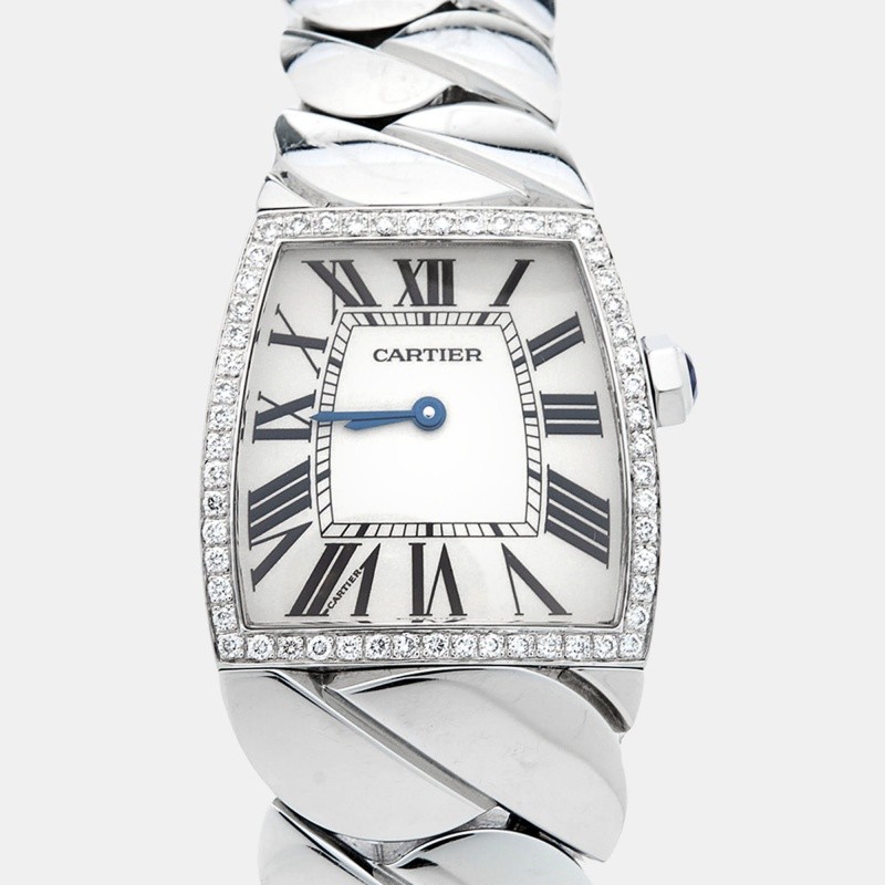 Wristwatches work as well as jewelry when accessorized right. Take a look at the beauty of this Cartier. It comes made from stainless steel with a braid like bracelet and a diamond embellished bezel, fully ready to charm. The silver dial is fixed with Roman numeral hour markers, two sword shaped hands, and a secret signature at VII. A water resistance of 30 meters and a concealed clasp make the watch ready to perfectly sit on your wrist.Certified by The Luxury Closet - This item has gone through a detailed authentication process overseen by our experts. We offer a lifetime guarantee of authenticity on all our items. Import duties, taxes and charges are not included in the item price. These charges are the buyers responsibility. Please check with your country’s customs office to determine what these additional cost will be prior to buying. Our eBay Store About Us Contact Us Add to Favorite Sellers Cartier Silver Stainless Steel Diamond La Dona W660022I Women's Wristwatch 28 mm $10153 Wristwatches work as well as jewelry when accessorized right. Take a look at the beauty of this Cartier. It comes made from stainless steel with a braid like bracelet and a diamond embellished bezel, fully ready to charm. The silver dial is fixed with Roman numeral hour markers, two sword shaped hands, and a secret signature at VII. A water resistance of 30 meters and a concealed clasp make the watch ready to perfectly sit on your wrist. Product Details Brand Color Silver Dimensions Material Stainless Steel Size 28 mm Outsole Width Outsole Length Heel Height Includes The Luxury Closet Packaging, 2 Extra Links Certified by The Luxury Closet This item has gone through a detailed authentication process overseen by our experts. We offer a lifetime guarantee of authenticity on all our items. How We Check The in-house team of experts at The Luxury Closet is highly trained to verify the authenticity and the condition of the luxury products. They ensure that only 100% authentic items are put on sale.The evaluation process is unique with its own mix of assessment criteria and differs according to the category. Each item is evaluated based on the following combination of hallmarks, hardware, stitching, symmetry, material, craftsmanship, stamping, codes, hologram stickers, and packaging. Our authenticators also check if the items have been modified or amended (e.g., aftermarket diamonds, replaced batteries, repaired bags, etc.) International Buyers Import duties, taxes and charges are not included in the item price. These charges are the buyers responsibility. Please check with your country’s customs office to determine what these additional cost will be prior to buying.