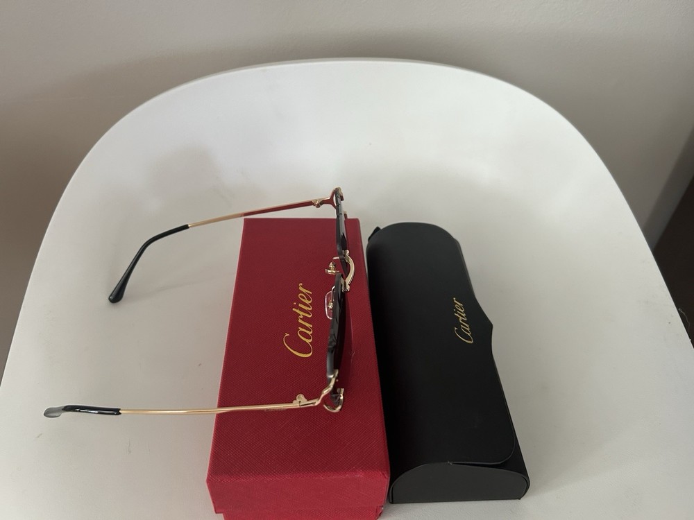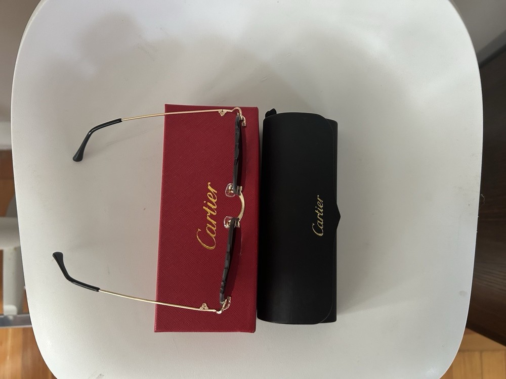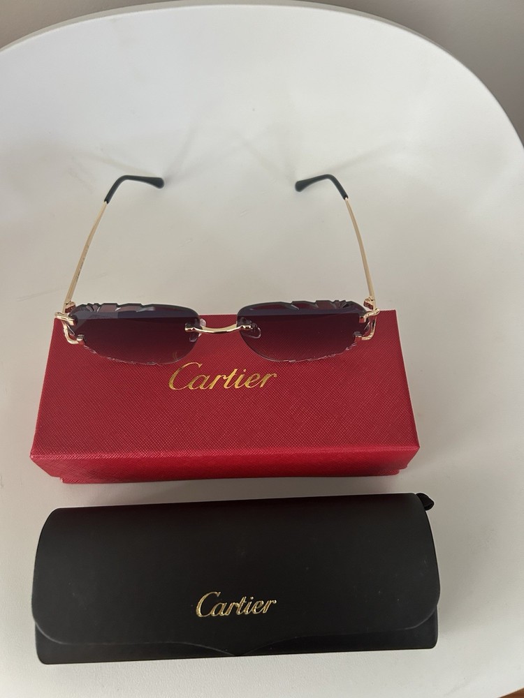 The product is a set of seven Cartier sunglasses in a stylish gold frame color, made with high-quality glass lenses. Designed for unisex adults, these sunglasses showcase the luxurious craftsmanship and design of the French luxury brand. Perfect for adding a touch of elegance and sophistication to any outfit, these sunglasses are a must-have accessory for those seeking both fashion and function in their eyewear.