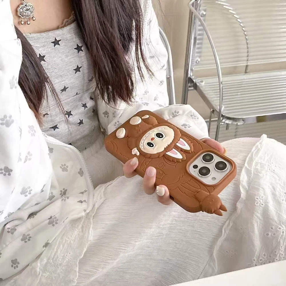 Cartoon 3D LABUBU Silicone Soft Phone Case Cover For iPhone 16 Pro Max 15 14 13