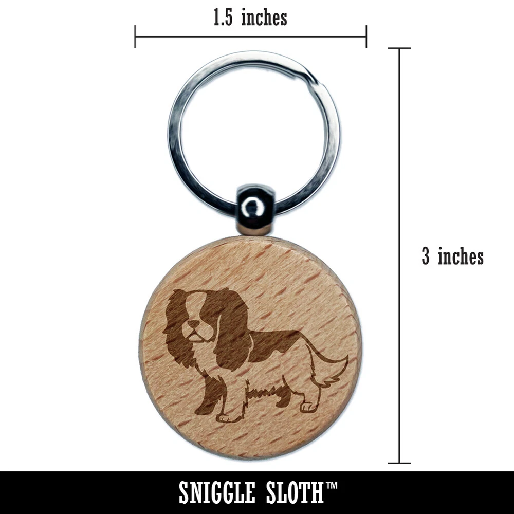 Cartoon Cavalier King Charles Spaniel Dog Pet Engraved Wood Round Keychain