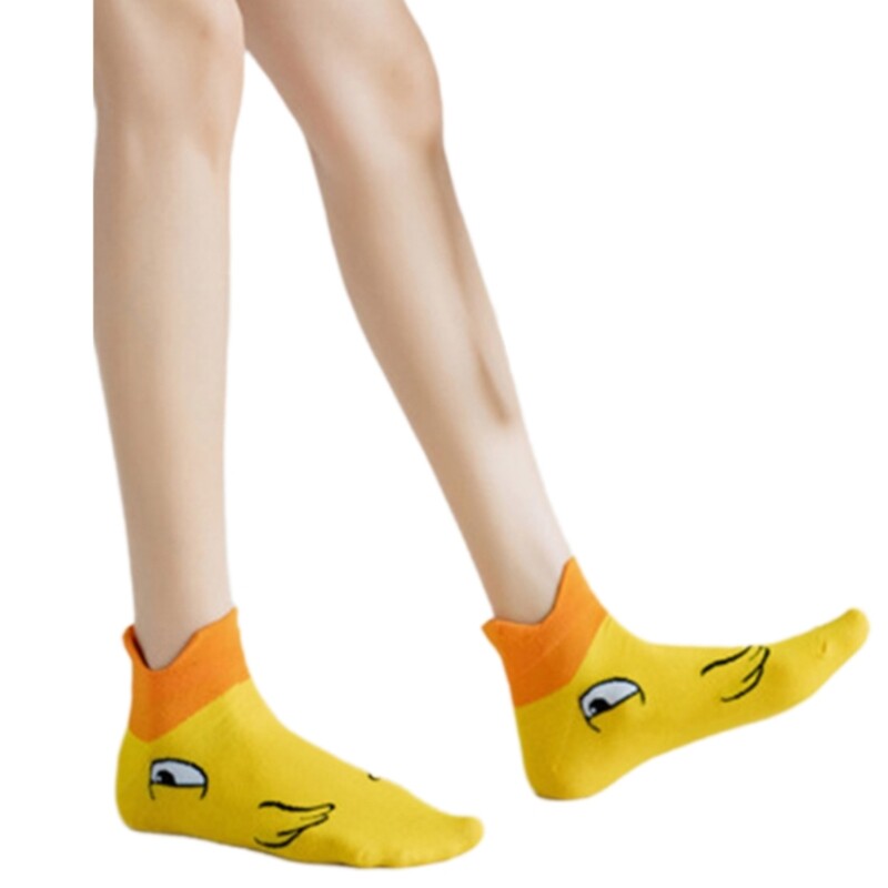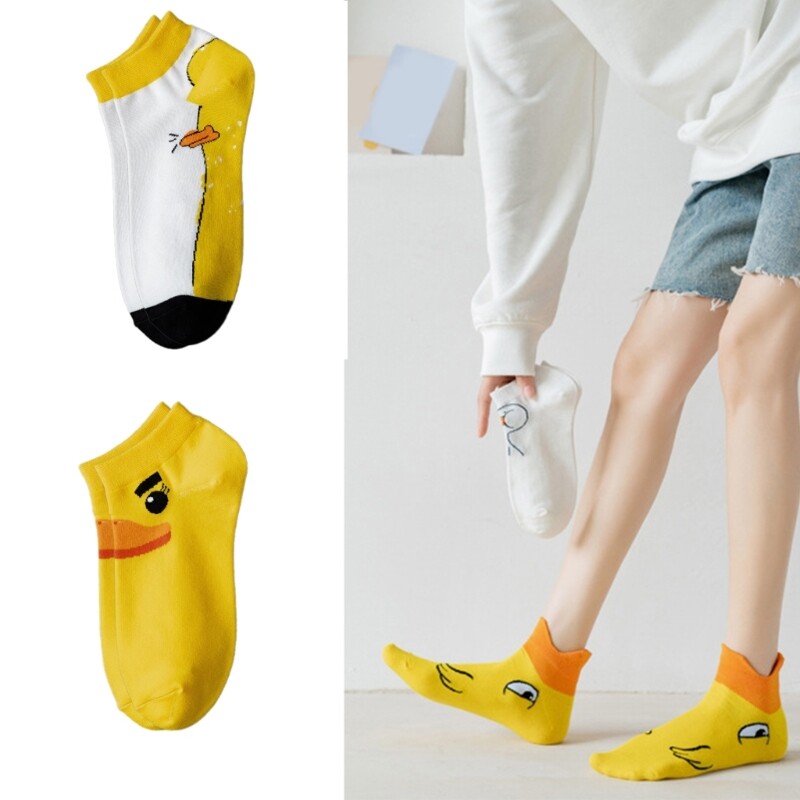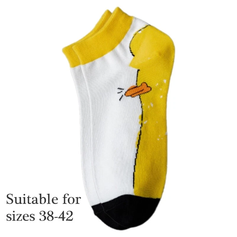 Cartoon Duck Print Ankle Socks for Women Soft Cotton Low Cut Socks