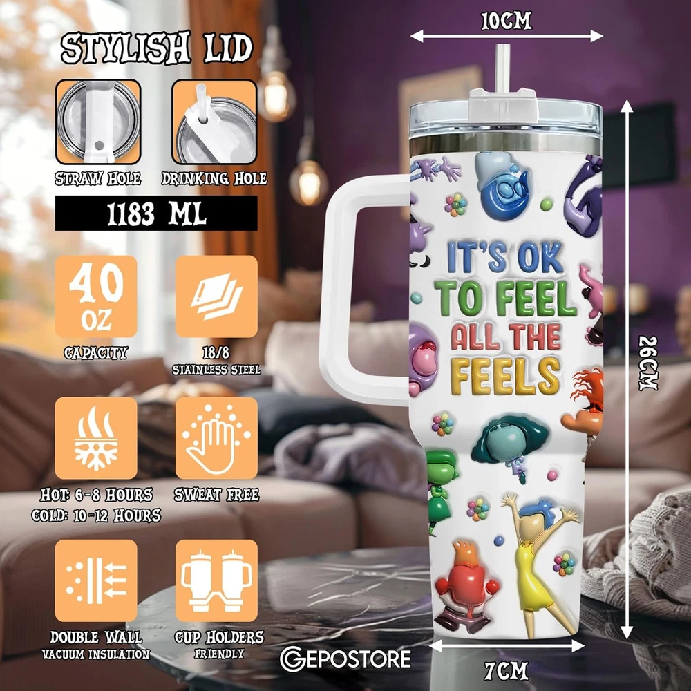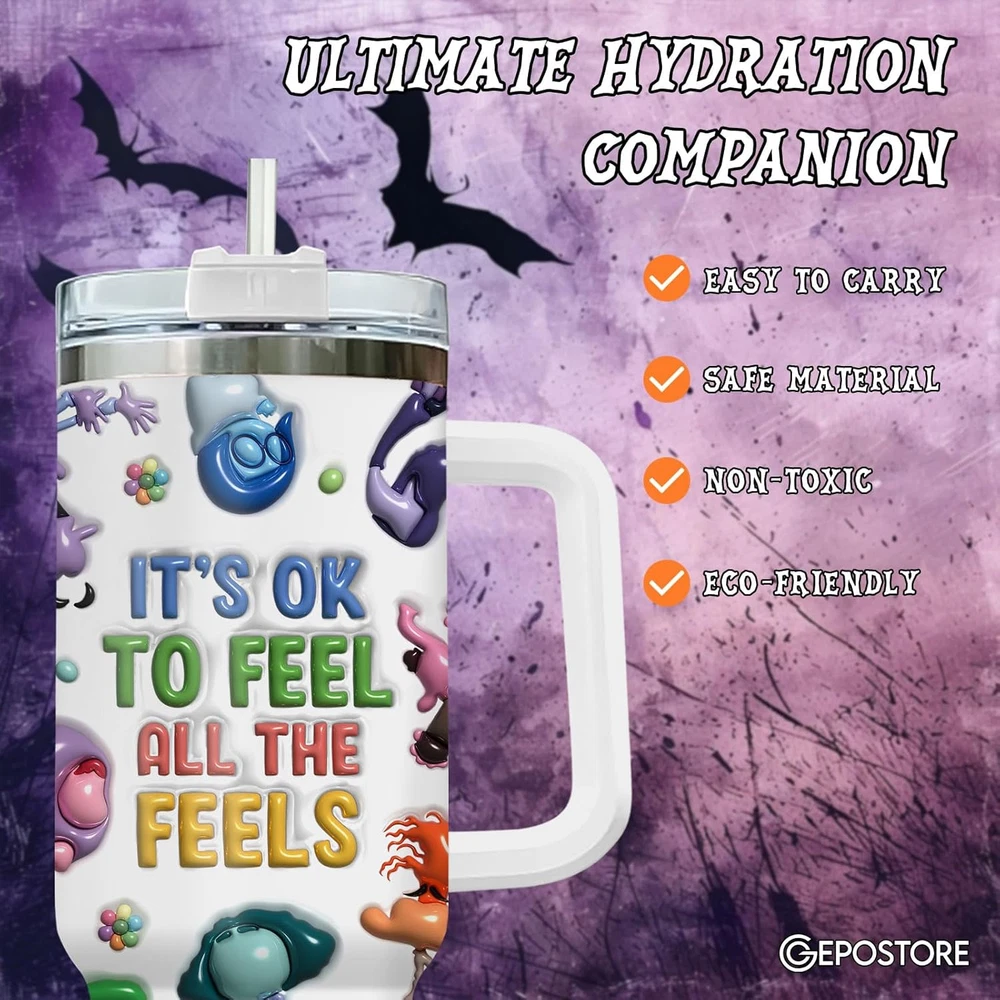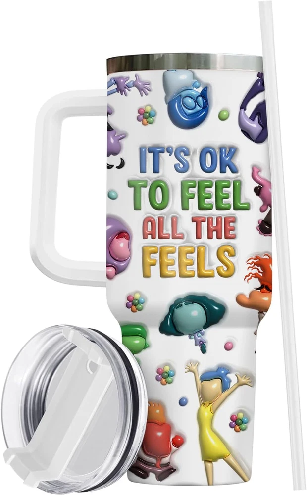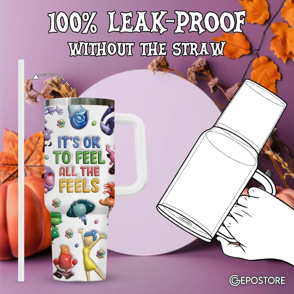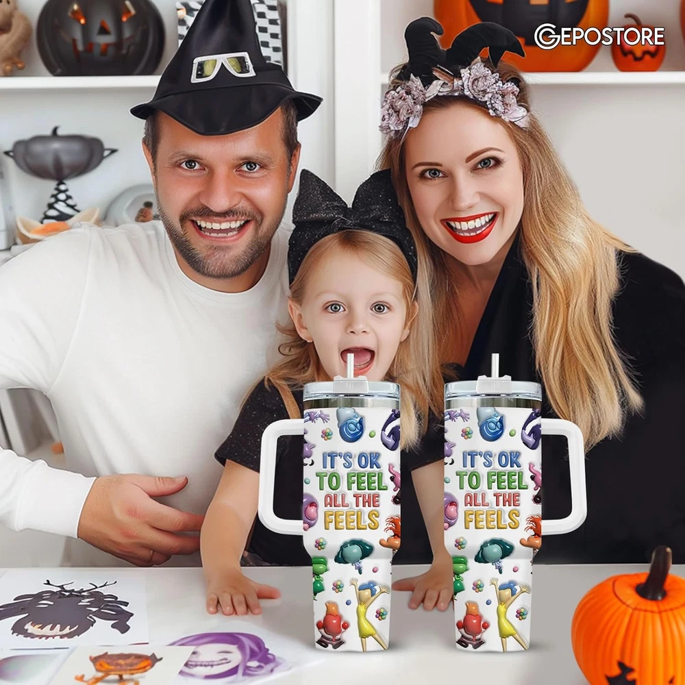 Cartoon Lovers Gift, Feel All the Feels Tumbler 40Oz Stainless Steel with Handle